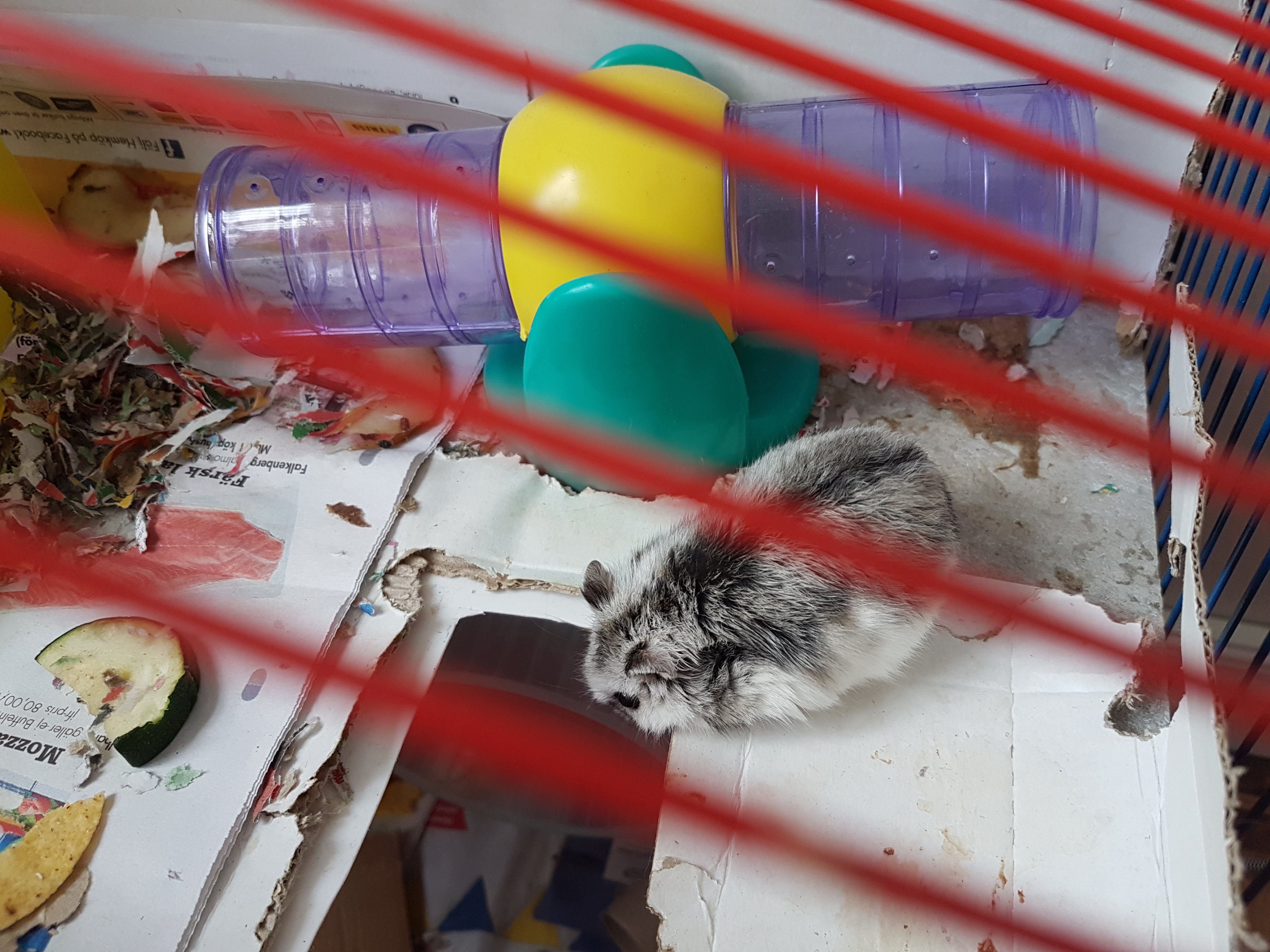 BlendaSensitive Skrevet 13. juni 2017 #1 Skrevet 13. juni 2017 På vei til barnehagen så så jeg og datteren ett bur, og den hadde en lapp med hamster søker nytt hjem.... Så etter kort diskusjon så bestemte vi oss for å droppe å få katt - men har adopterte to voksne og tre barn, av ukjent hamsterart. Jeg mistenker det er russisk dverghamster eller Campbell. Noen som kan tipse om hvordan se forskjell? På det store bildet er det jeg tror, regner med er mamman., Hun var iaf veldig stresset med på få den ene grå ungen opp til seg... Mamman er ca 7 cm lang, er jo litt vanskelig å si de er så bollete. Minste bildet er to av ungene. - Jeg har allerede pillet ut appelsiner, for mye pære och nachos (!). Leste at de kan spise for eksempel bulgur og ris, men er det kokt eller ukokt?? - Skal gå til innkjøp av hamstermat og ordentlig strø. Skal det være sand eller sånn flis?? - Må separere kjønnene.... Og dessuten ta bort over etasjen, leste de kan skade seg om det er for høyt, men hva er for høyt?? (denne har ca 25-30 cm opp) 1