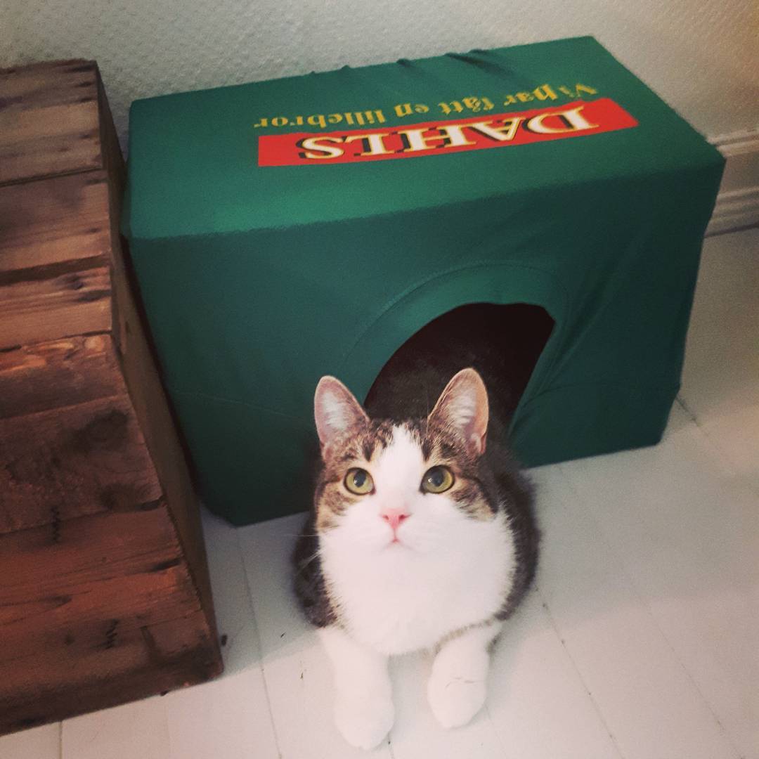 _popcorn_ Skrevet 22. august 2017 Forfatter #3 Skrevet 22. august 2017 Har denne selv! Brukte en gammel øl-kasse i papp, som kattene ikke lekte med, og puttet en t-skjorte rundt den, og nå er det en kanonfin hule som blir mye brukt! Største pusen kommer seg ikke inn, så det er en liten hide-out for minstemann! :D 2