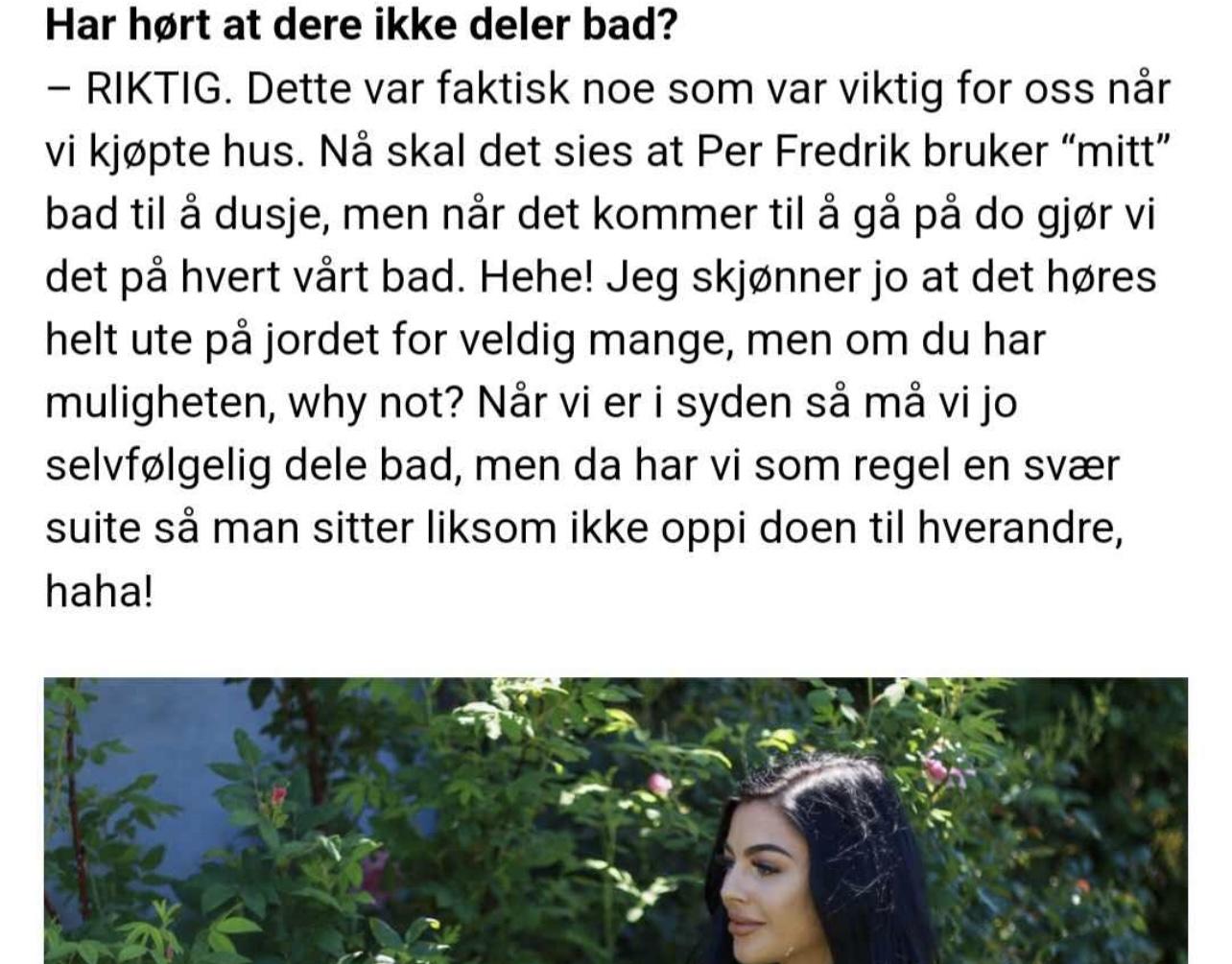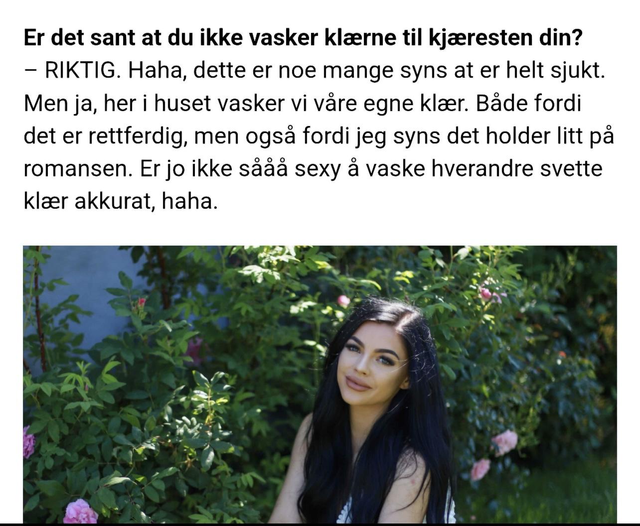 Purple Diamond Skrevet 9. februar #12467 Skrevet 9. februar JojoMoyes skrev (1 time siden): Det beholder litt av romansen å ikke vaske klærne hans ? Altså de gjør vel om ikke alt så det meste hver for seg ? Egentid med sønn hver for seg ? Trener hver for seg(han trener hvertfall) ute av huset hver for seg ? Hvilken romanse snakker vi ? Synes hele forholdet mellom de 2 og de 3 som familie virker helt merkelig jeg da .. Andre har vel litt mere tid sammen med et barn når de har fått et nytt barn og ikke deler opp hver dag sånn som dette ? Vet ikke hvorfor jeg ble sitert her, men jeg følger henne ikke, så jeg vet ikke så mye mer enn jeg får meg meg her om hvordan de lever livet.
