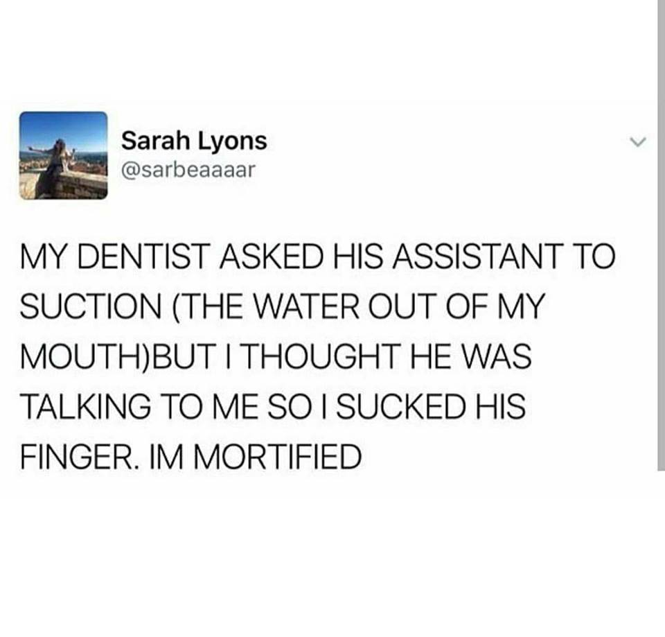AnonymBruker Skrevet 3. oktober 2017 #18 Skrevet 3. oktober 2017 14 timer siden, AnonymBruker skrev: Hjelp!! Jeg har aldri vært hos fysioterapeut før, og i dag var min første tur dit etter henvisning fra legen. Først snakket vi, og han var så hyggelig og positiv! Denne skaden skulle vi klare å fikse mente han. Saken ble ikke akkurat bedre at han var utrolig kjekk og at vi er ca i samme alder. Hadde vært så mye bedre om han var en gammel mann med svakt syn Jeg misforstod nok hva han mente, og det er så innmari flaut!! Jeg er enda flau, og dette er 2 timer siden!! Han sa "bare ta av deg på overkroppen, så skal jeg hente trykkbølge-ett-eller-annet". Og hva presterer jeg å gjøre da? Jo, jeg kler av meg på overkroppen som jeg fikk beskjed om.. Trenger jeg å si hvor flaut det var når han kom inn i rommet igjen og sier det hadde holdt å bare ta av jakken og skjorten?? Tror aldri jeg har fått på meg BH'en så kjapt før! Han tok det veldig profesjonelt, og skiftet samtaleemne med en gang, og jeg klarte å fullføre min første fysioterapeut-time. Nå kjenner jeg bare at jeg gruer meg alt for mye til onsdag igjen. Er det noen andre her som har opplevd noe like flaut, og enda klart å fullføre flere uker med behandling? Kansellerer jeg neste time? Hjelp! Poster i singelforumet fordi jeg også lurer på om det er lov å flørte med en fysioterapeut. Vet det ikke er lov med leger, men dette er ikke legen min. Han kjenner kun til skaden jeg får behandling for. Han hadde ikke giftering Er ikke hvem som helst jeg får så god kjemi med og kunne le og snakke om alt med! Anonymkode: 963c5...5a5 Begynner navnet hans på B og jobber han et sted som begynner på S? Jeg har opplevd akkurat det samme nemlig😆 Anonymkode: 736e0...697 1