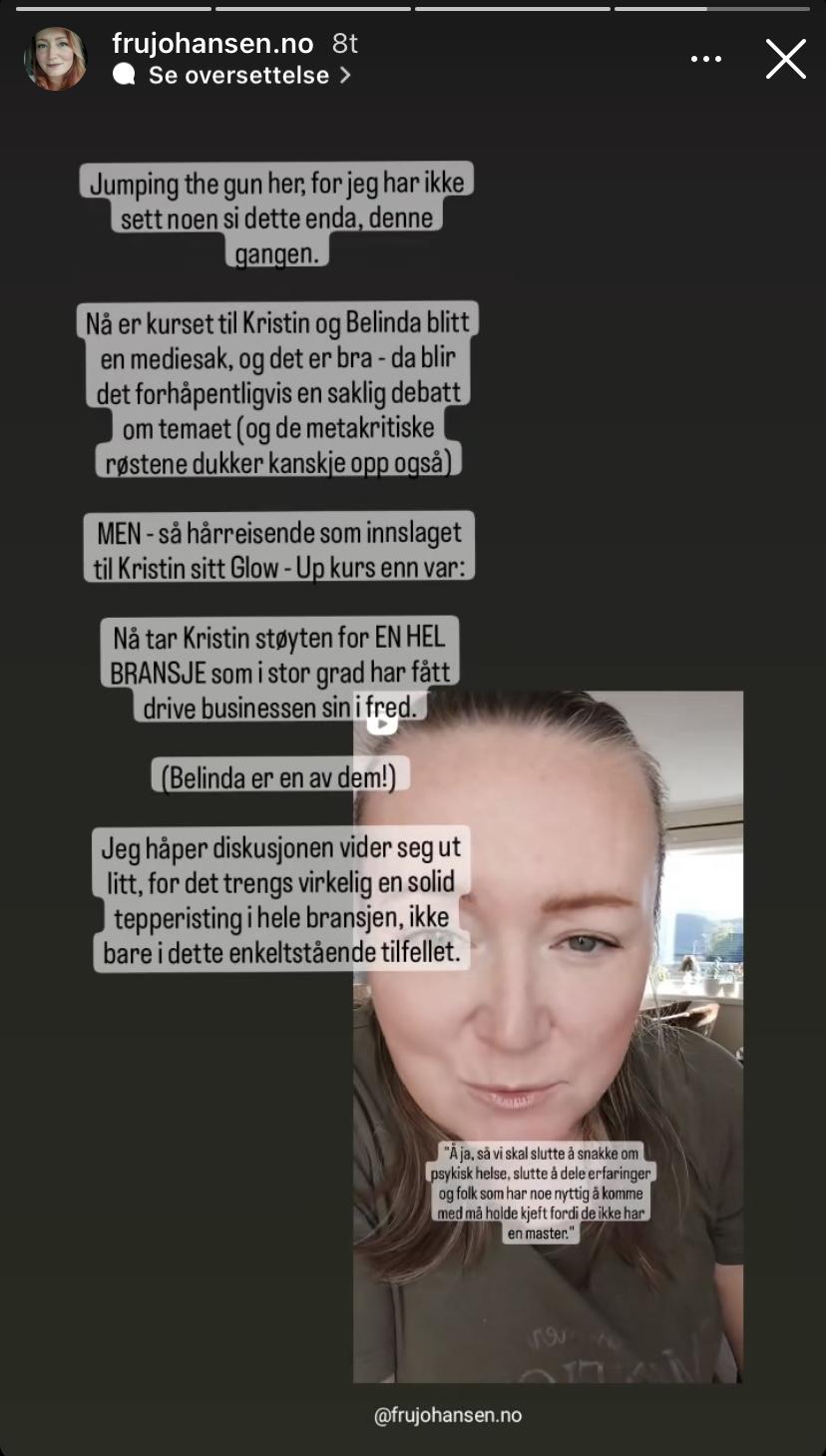 Tøvftta Skrevet 16. september 2023 #4159 Skrevet 16. september 2023 solietta skrev (7 timer siden): Husk at det er fagfolk i bildet. Er utrolig synd at det ble lansert , før prosjektet var helt ferdig og hadde alt på plass. Det er takket være personer som deg som er så totalt blottet for logisk tankegang at influensere får folk som betaler for disse kursene. Det var ferdig! De ble bare tatt på sengen av at folk reagerte på kurset og kom opp med en dum unnskyldning! INGEN influensere legger ut NOE uten grunn, det har Kristin selv sagt. Både Kristin og Belinda var klar over hva de publiserte når de la det ut OG sendte ut påmeldingsmail til noen ‘utvalgte’ personer. 25 2 6