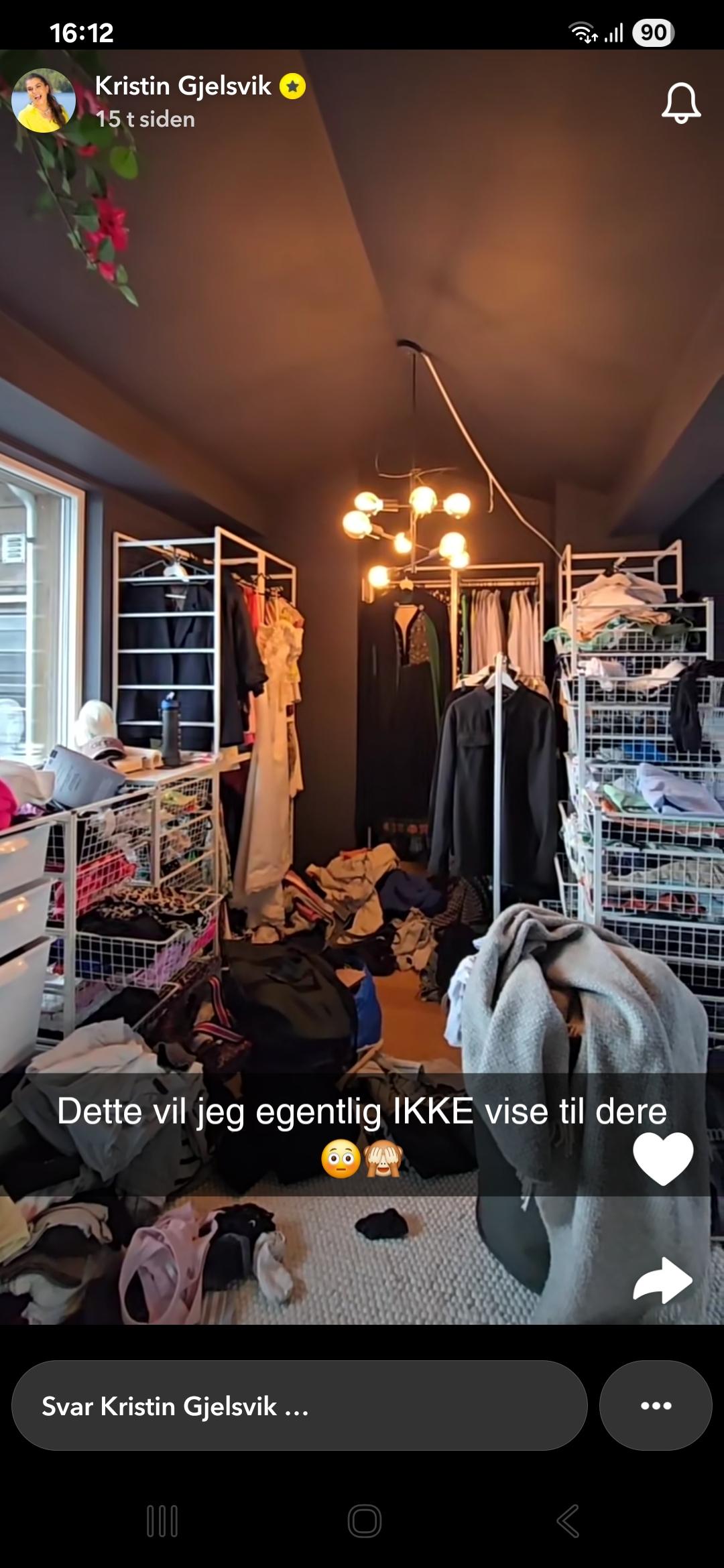 Tenkeselv Skrevet 20. oktober #11913 Skrevet 20. oktober Først nå fikk jeg opp noe på Snap, men nå flire litt her over Kristin å dette "for meg" vanvittige rot av klær ? Fordi hun sier alltid at alle har tid til 5 min å sette en deig osv til skolemat, men har hun egentlig det ? Øhhhh, nei ikke hvis huset egentlig ser slik ut 😅 5 5