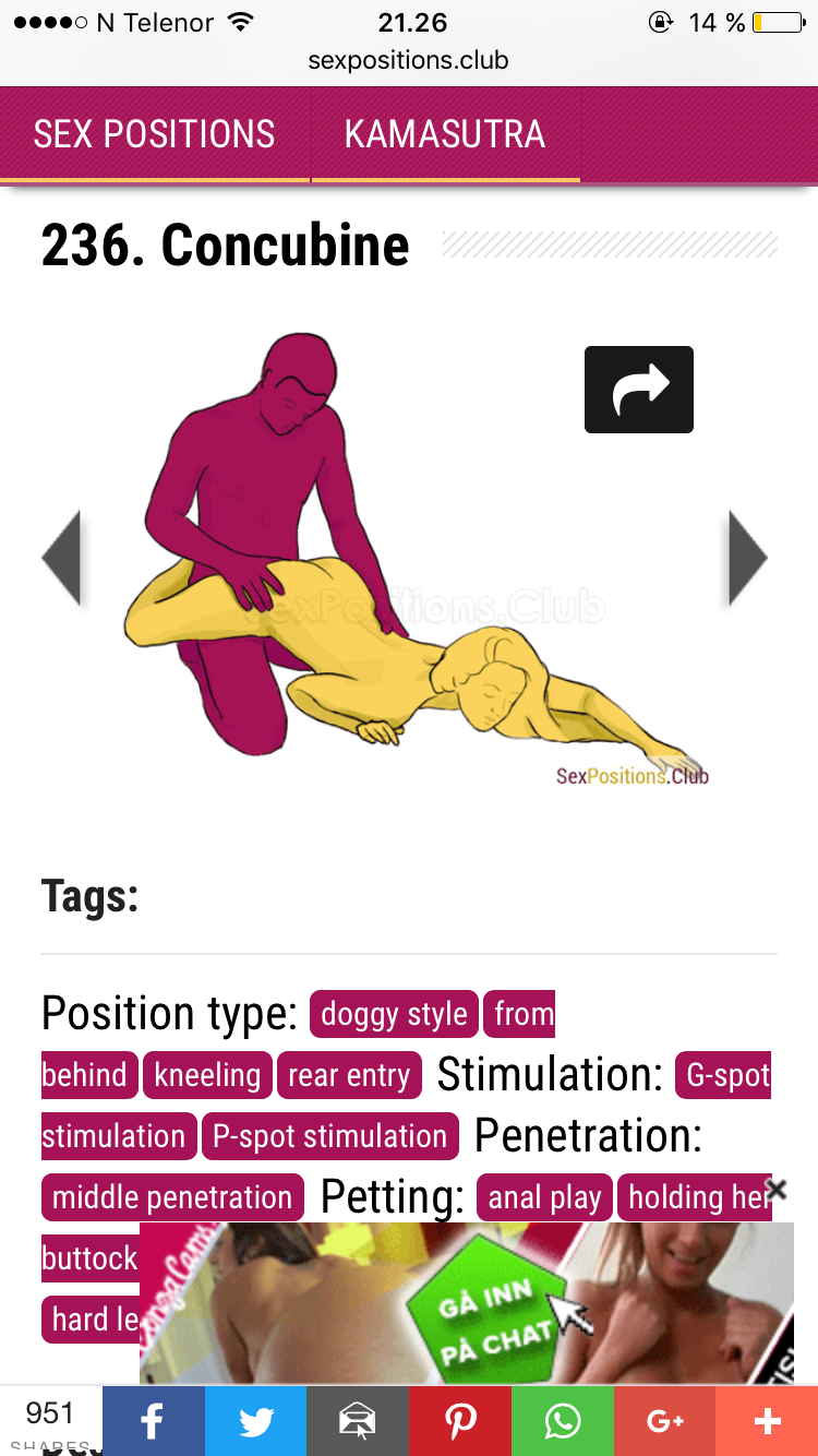 AnonymBruker Skrevet 17. oktober 2018 #2 Skrevet 17. oktober 2018 Altfor mange til at jeg gidder å laste opp bilde her. Gikk gjennom en side senest for et par uker siden med 90 sexstillinger og tok minst 40 screenshots hehe 😊 Anonymkode: c7289...6e3