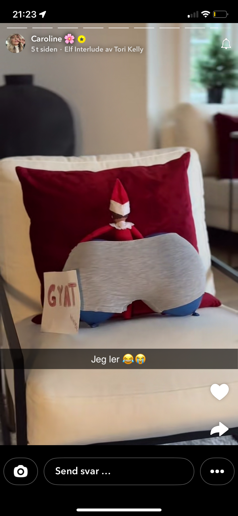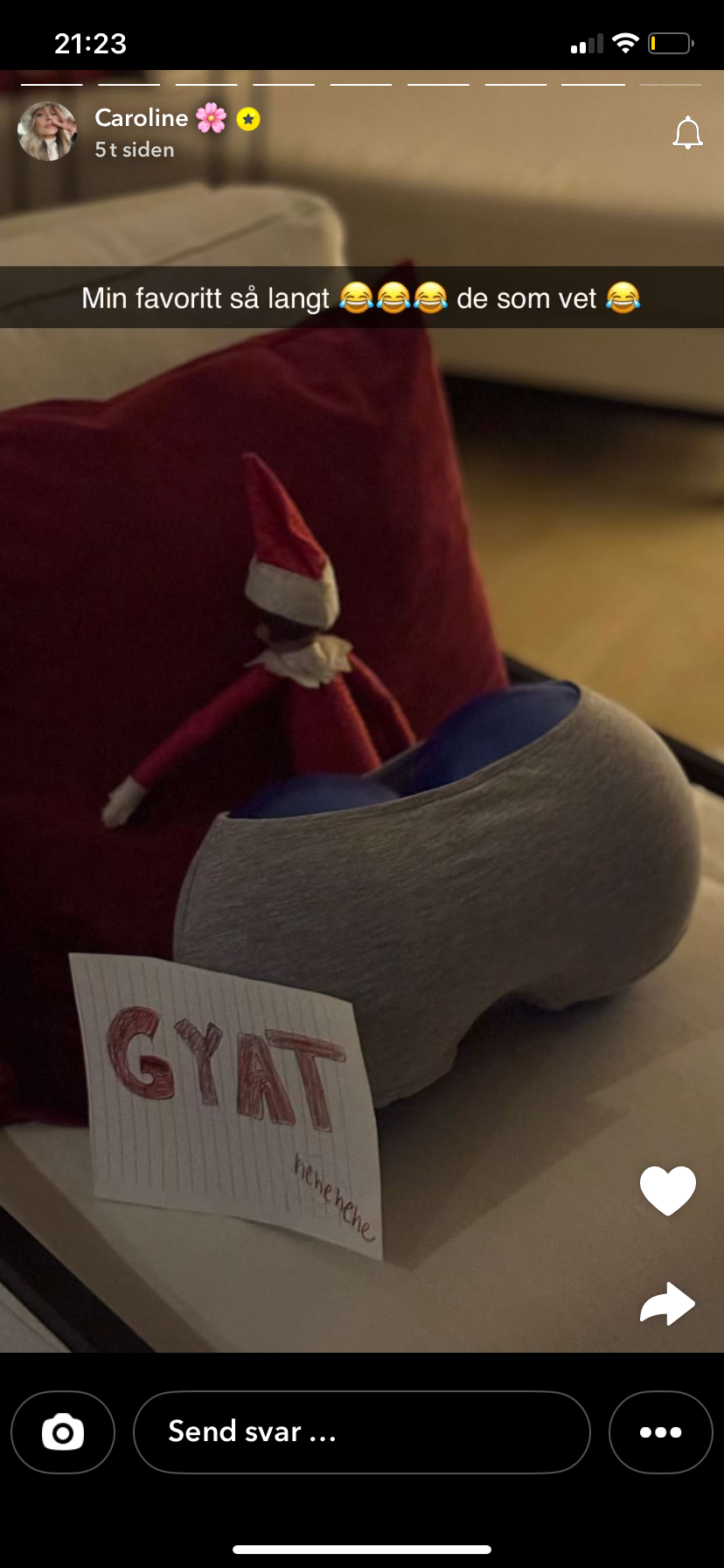 Snødronninga Skrevet 2 timer siden #108388 Skrevet 2 timer siden Dette er humor av beste sort for Caroline, en rumpepute. Jeg kommer ikke på noe annet enn at hun refererer til diskusjon på KG, om hun brukte innlegg for å få større rumpe. Noe hun tok som et kompliment, visstnok. Hva er vel bedre enn å tulle med dette som er rampenisse-strek? Kan godt hende jeg tar feil, men det hadde neimen ikke sjokkert meg. Kroppsfokus lenge leve, barna må jo lære det først som sist. 4