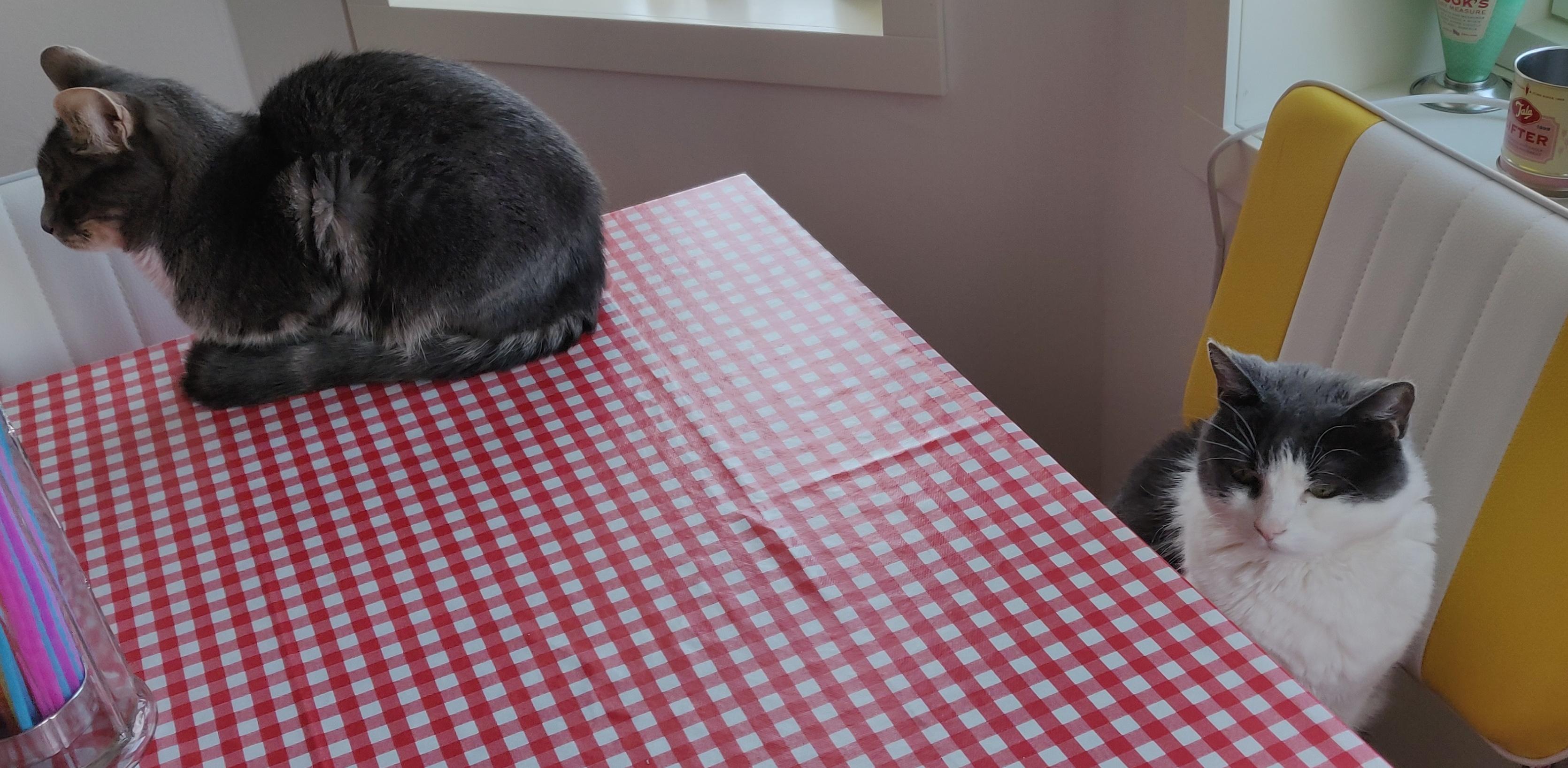Kattene ved bunnpris har vært hos dyrlegen i dag. Bings skjønner nok ikke helt hva som foregår.