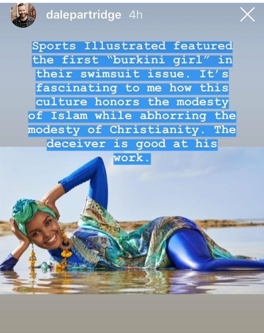 AnonymBruker Skrevet 3. mai 2019 #1 Skrevet 3. mai 2019 Islam er så kult at til og med undertøysbladet Sports Illustrated vil ha burkinibabes på forsiden sin. Tenk dere en amish eller tildekt kristen jente i stedet? Lol. Notre Dame brant nylig ned i Paris, og Macron har erklært at gjenreisingsbygget skal ha minaret. En islamsk minaret på en tusenårig katedral altså. Megakirken Hagia Sofia i Tyrkia ble nylig omgjort til moské også, men sånt skjer hele tiden, særlig i Sverige. Hvorfor er kristendommen ansett som ukul mens islam er moderne [sic] og kult? Hva mener du? Anonymkode: cf25f...77b 2
