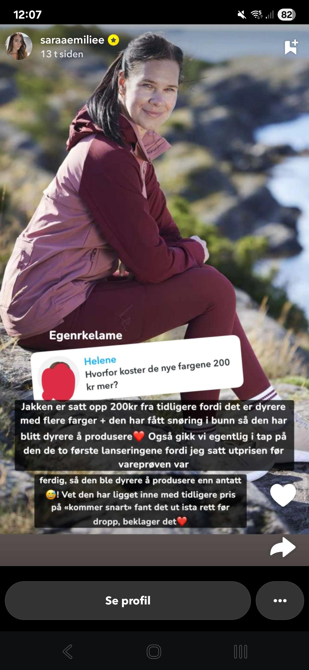 Snublefot62 Skrevet 2. september #50545 Skrevet 2. september GulleGull skrev (22 minutter siden): Her var det snakk om at jakken lå ute til lavere pris frem til rett før dropp. Dvs det er villedende å lokke kunder til nettsiden pga pris for så plutselig sette den opp rett før samme dropp. Det er slik jeg tolket denne situasjonen. Det var ei som skrev på fb siden Snublefot62 skrev (21 minutter siden): Ah. Skjønner. Ja det blir i strid med markedsføringsloven. De er nødt til å selge produktene til annonsert pris, ellers blir det regnet som lokkepris og ulovlig. Her er aktuell lovparagraf: Sitat § 7.Villedende handlinger En handelspraksis er villedende dersom den inneholder uriktige opplysninger og dermed er usannferdig eller på annen måte er egnet til å villede forbrukerne med hensyn til ett eller flere av følgende elementer: a. ytelsens eksistens eller art, b. ytelsens hovedegenskaper, for eksempel dens tilgjengelighet, fordeler eller risiko, ytelsens utførelse, mengde, sammensetning, spesifikasjoner, tilbehør, opprinnelse, hvordan eller når ytelsen produseres eller ytes, levering, bruk eller egnethet for et formål, resultater som kan forventes ved bruk, tester eller kontroll som er utført på ytelsen, eller ettersalgsservice og klagebehandling, c. omfanget av den næringsdrivendes forpliktelser, motiver for handelspraksisen og salgsprosessens art, eventuell erklæring eller symbol i forbindelse med direkte eller indirekte sponsing eller godkjenning av den næringsdrivende eller ytelsen, d. prisen på ytelsen eller hvordan prisen beregnes, eller eksistensen av en prisfordel, e. behovet for service, deler, utskifting eller reparasjoner, f. den næringsdrivendes eller den næringsdrivendes agents art, egenskaper og rettigheter, g. forbrukernes rettigheter, herunder rett til omlevering eller tilbakebetaling, eller risiko forbrukerne kan bli utsatt for, h. den næringsdrivendes forpliktelse til å følge bransjenormer. Jeg har uthevet det som er relevant, men tok med hele paragrafen som kan finnes her: https://lovdata.no/lov/2009-01-09-2/§7 Når hun sier at prisen blir kr 999, men etter lansering krever 1199 så har man villedet forbrukere med feil salgspris. Jeg er skråsikker på at noen kommer til å påpeke at det er frivillig å kjøpe - noe det heldigvis er - men det er fortsatt villedende praksis. 5 8