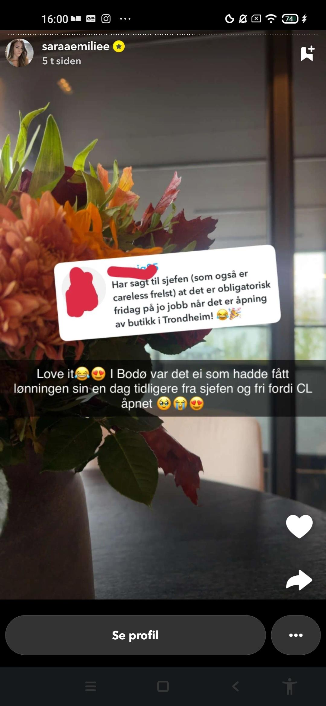 Hva er det som skjer på snappen egentlig? Det er voldsomt til framsnakking av seg selv. Fra et markedsførings perspektiv så sender hun ut signaler om at hun må presentere seg selv som en som er meget populær,  og at man bare MÅ kjøpe ullundertøy som har dropp i kveld. Det kan se ut til at mye står på spill med dagens dropp, og at hun har et stort behov for å spille på de parasosiale relasjonene hun har har til de følgerne som fortsatt kjøper klær fra CareLess.