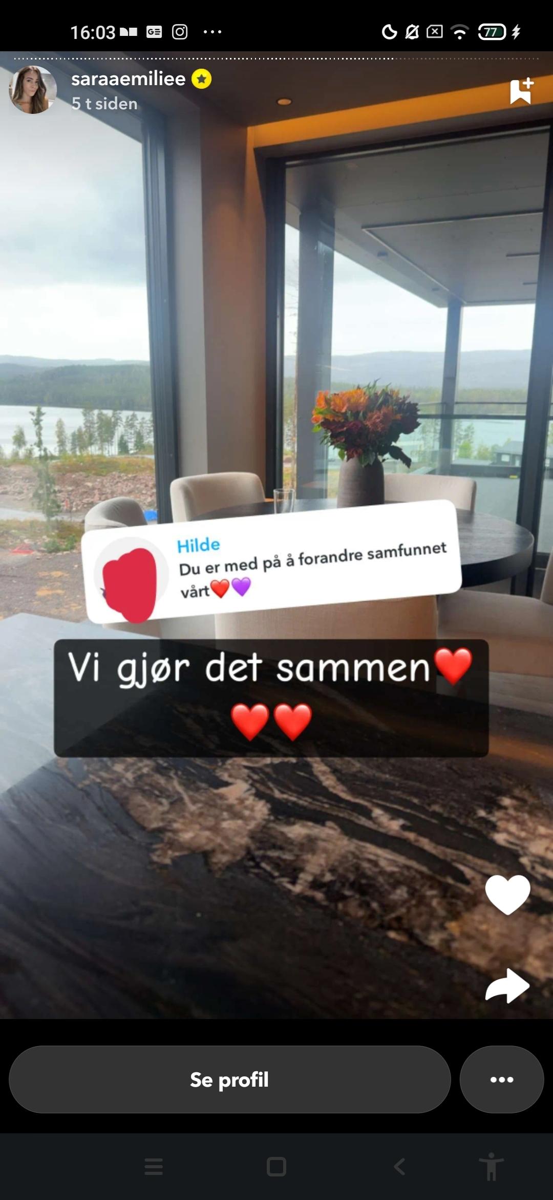 Hva hun gjør for å forandre samfunnet? Den snappen var jo i forbindelse med noe annet. Hadde du delt det også, så hadde folk forstått det også, kanskje du også. For den kom ikke ut av det blå.