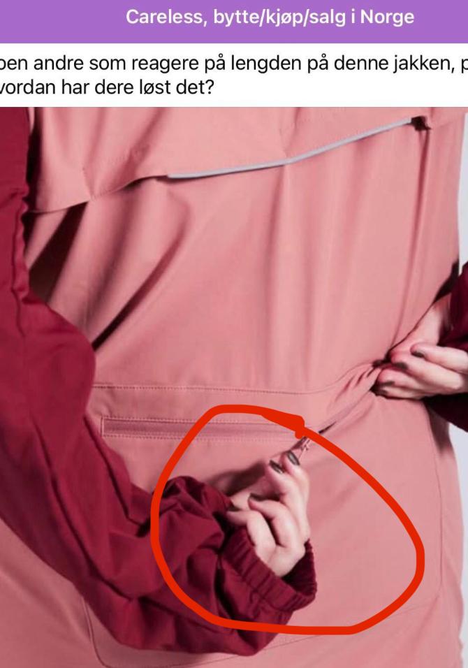 Era Vulgaris Skrevet lørdag kl. 09:52 #53385 Skrevet lørdag kl. 09:52 Anemoi skrev (6 minutter siden): På CL sin kjøp og salg-side ligger dette bildet, en av kjøperne syns ermene er alt for lange på skalljakken. Innlegget har 38 kommentarer, mange har opplevd det samme. Det diskuteres ulike løsninger, noen må brette opp tre ganger, andre vurderer å sy. De er jammen løsningsorienterte disse kundene, det skal de ha. 7