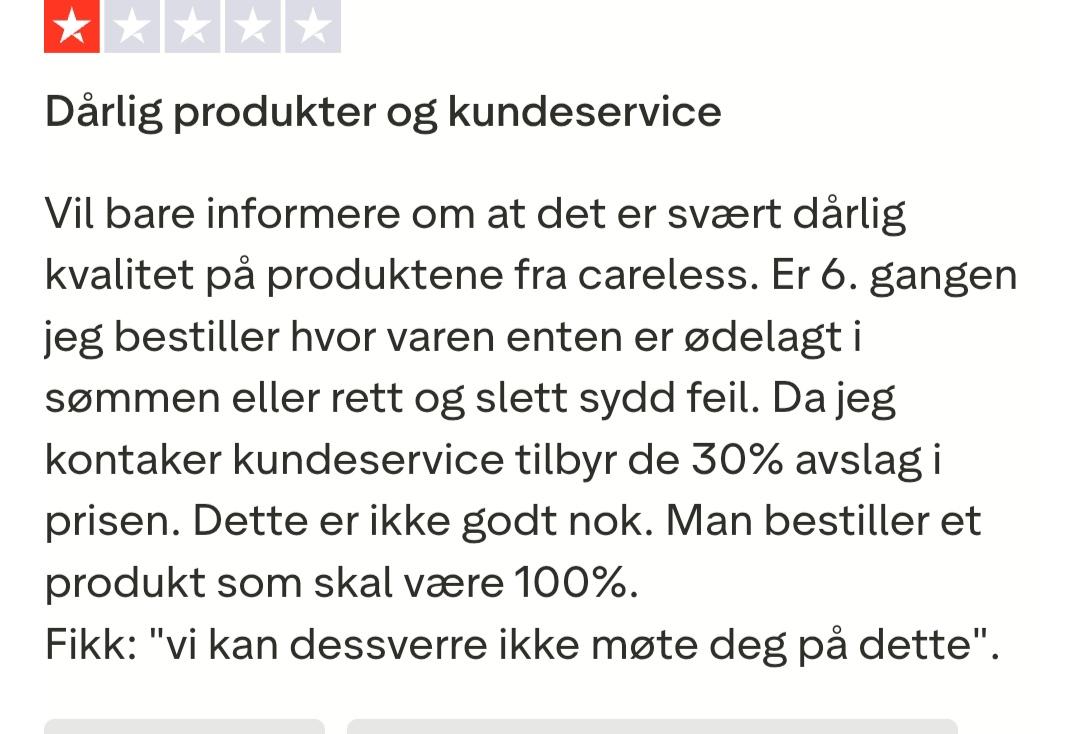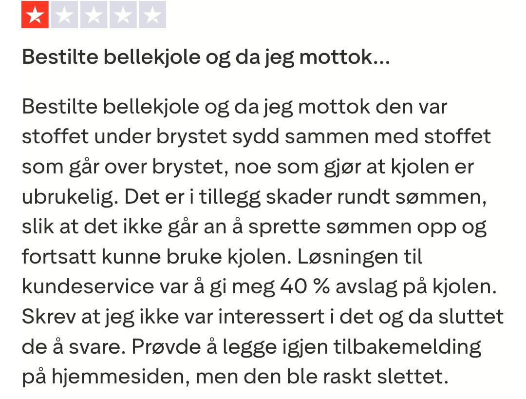 Bella50 Skrevet lørdag kl. 18:06 #53440 Skrevet lørdag kl. 18:06 elskersommer skrev (2 timer siden): Bilder fra trustpilot Vi snakker om angrefrist og ikke reklamasjon, @elskersommer. Vet du forskjellen? 🤔 1 2