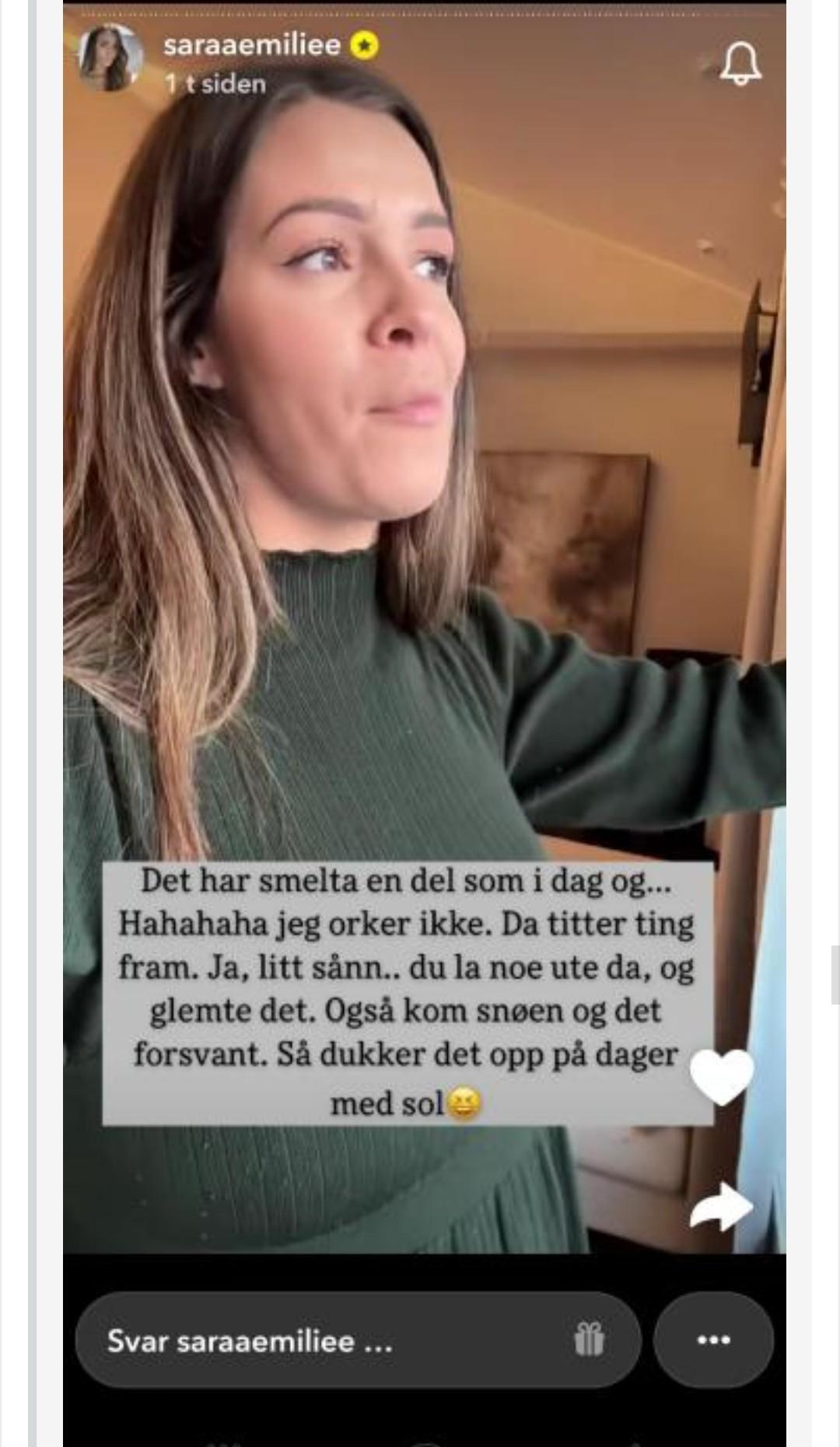 Stargaze Skrevet 6. oktober #53728 Skrevet 6. oktober Tigerfrue skrev (27 minutter siden): Tror jeg forstår litt hvordan du tenker, men er ikke sikkert disse få eksemplene her er de beste, men de sier noe, synes jeg ihverfall..... På sensommeren/tidlig høst, da hun skulle til Bergen, fikk vel Sara endel pepper om at droppene var så forsinket, datoer som stadig ble forskjøvet, løpeshorts i november osv. Hun unnskyldte seg da med at forandringer ønsket av kjøpere var en årsak, og at hun/ de lå bakpå og bestilte for sent ( til fabrikker), og at hun helst skulle vært i Bergen hver md for at bestillinger gikk etter planen og samsvarte med årstidene...... Da reiser du til Bergen hver md om du ønsker å drive seriøst. Da hun skulle ha drop på ullundertøyet, så fant hun ikke esken, og fikk ikke vist, men la ut katalogbilder......... hun lurte jo muligens på om de sto igjen i gammlehuset, og det gjorde de jo..... Da leter du høyt og lavt og reiser og ser om esken med klærne står igjen der. Folk som handler er jo vandt til at hun prøver på og legger ut det. Nå har det vel vært noen drop i dette nye huset, men har vel aldri blitt mere uproft laget........I bakgrunnen er det kjøkkenrot, barnerot, slengte klær på gulvet, halvveis slengt på stoler og bord, hun halvgjemmer seg bak en "klesøy" !!, rart lys og dårlig plass....... Altså det vitner om dårlig planlegging og prioriteringer. Og hun skylder på dårlig tid, og får gjordt så lite, men å fly ned huset til sine foreldre i flere timer hver dag, pga en kaffekopp, det har hun tid til..... Seriøst, hun burde ha kjøpt seg en kaffetrakter for lengst, i påvente av den innebygde, så hadde hun hatt tid til å rydde, og laget disse drop filmene sine, uten alt rot og fjas rundt. Og en siste ting, for nå........ merkverdig stille etter alle dropp nå, så vidt hun takker og lissom er fornøyd. Prater knapt om de...... I dag, kun en snap, og helt stille ellers ....... Går nok ikke så bra som hun håper. Dette innlegget bør SE lese! I tillegg bør hun vurdere om hun leverer på disse punktene: 5 4
