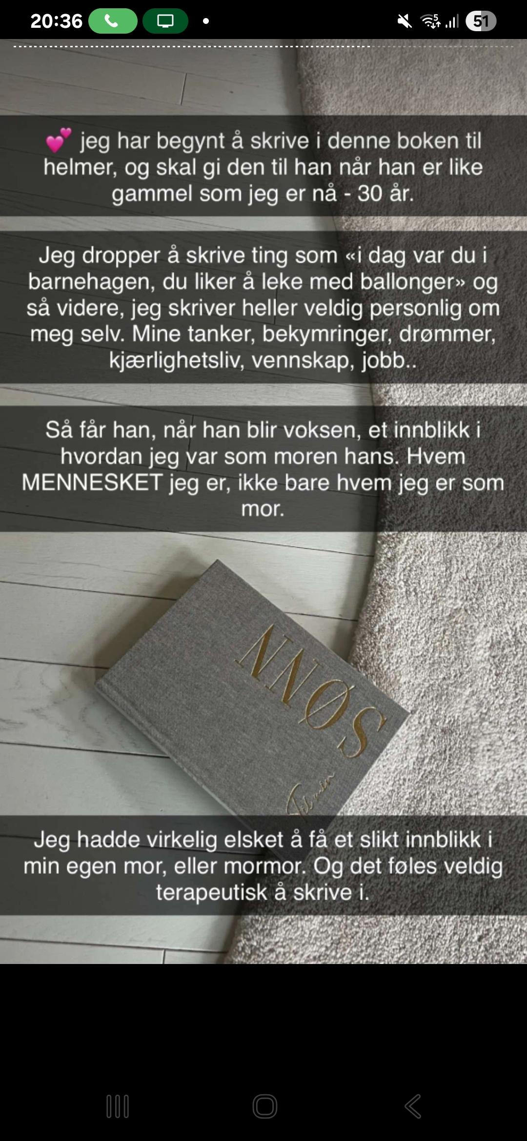 Tenk å få en bok når du er 30 år, du åpner den og lurer på hva fint mammaen din skriver om deg.