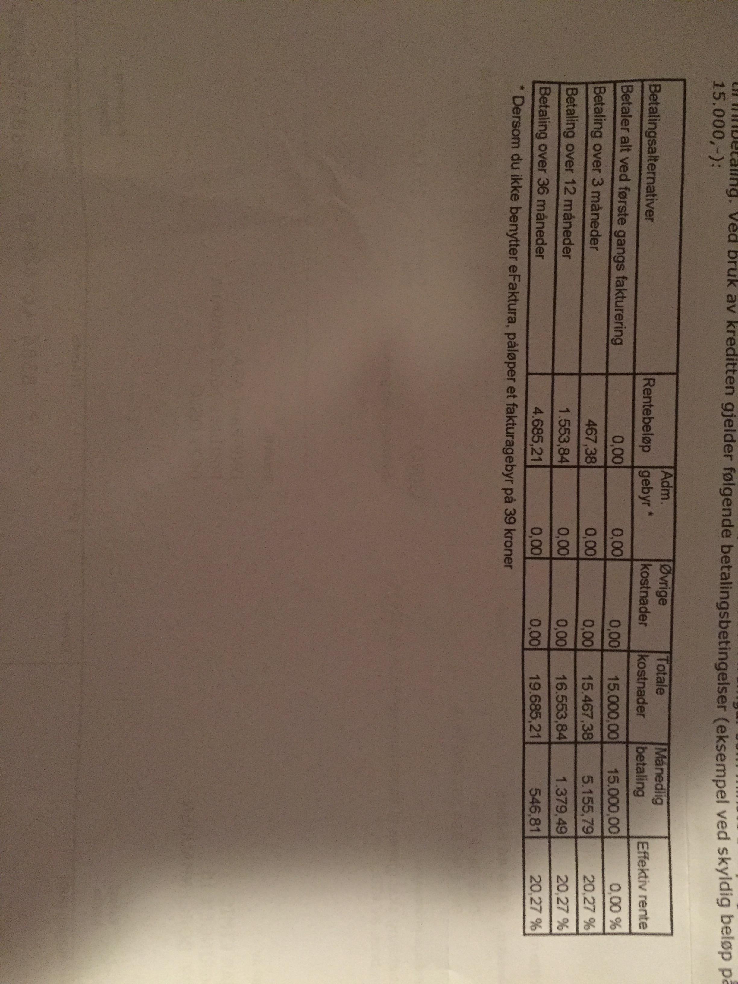 iskremm Skrevet 25. desember 2019 #1 Skrevet 25. desember 2019 (endret) Hei! Jeg er student og skaffet meg mastercard med kredittgrense på 5000,- forrige måned, jeg brukte opp hele summen, og fikk en faktura å betale innen idag på 5000,-. Men jeg får lønn den 1.januar, men da fjernes den 45 dager kreditfrie grensen, og da kommer rentene. Noen som vet hvor mye jeg må betale om jeg heller betaler 1 januar enn idag? Vil rentene komme på mye? Har dnb. Endret 25. desember 2019 av iskremm