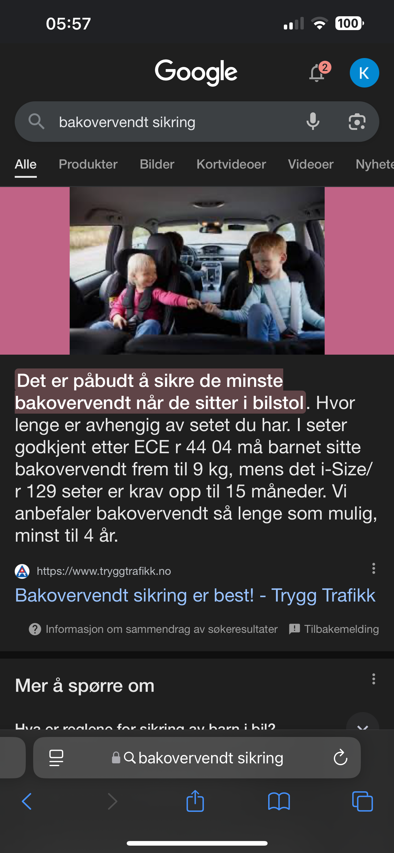 Summerwinter Skrevet 18. mai #268 Skrevet 18. mai elskersommer skrev (På 13.5.2025 den 22.54): Jeg forsvarer ikke lovbrudd.. men alle kan gjøre en feil.. å feilen ble rettet opp i med en gang. Trenger ikke hugge hue av mor og far.. De kjørte ikke oslo-trondheim med sete feil vei Feil? det snudde barnet for å skape innhold på snap.. hvorfor skulle en ellers stoppe midt i en biltur, løse barnet sitt og sette det motsatt vei? 8