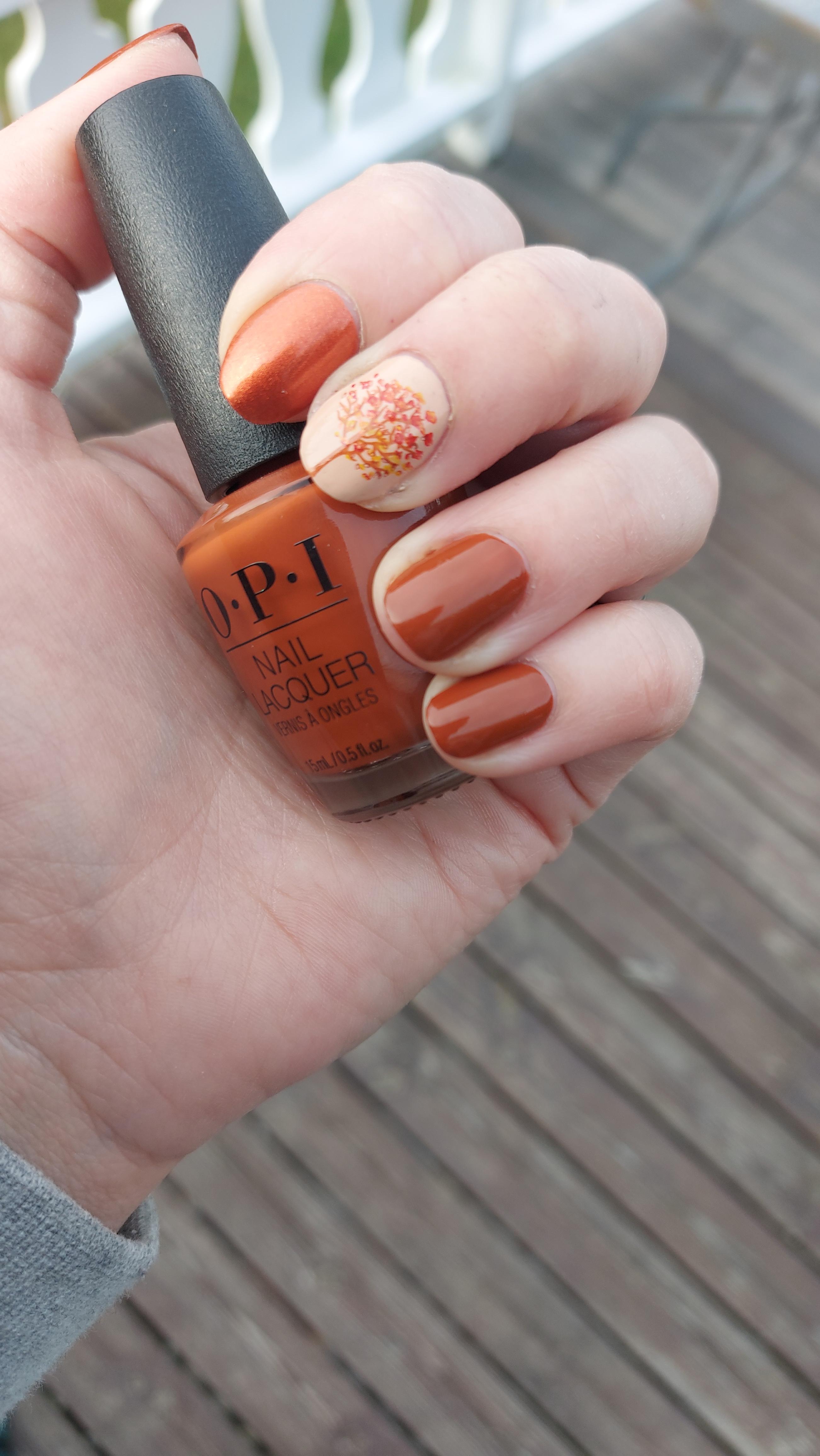 og kan jeg spørre hva den rustfargede OPIen heter? Akkurat min type farge!