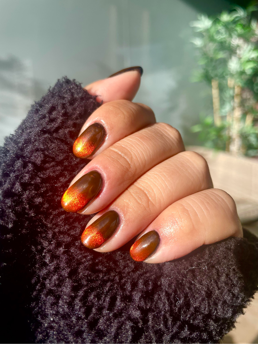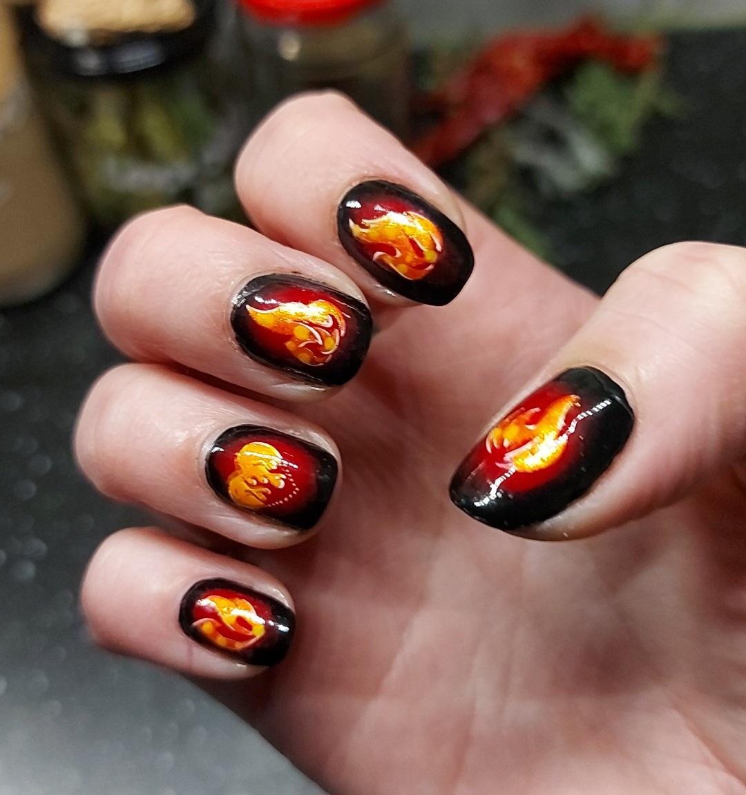 Hadde håpet at lakken ville være litt mer rød enn oransje for å få en litt "blodig" halloween look, men de ser et som flammer i solen 🔥