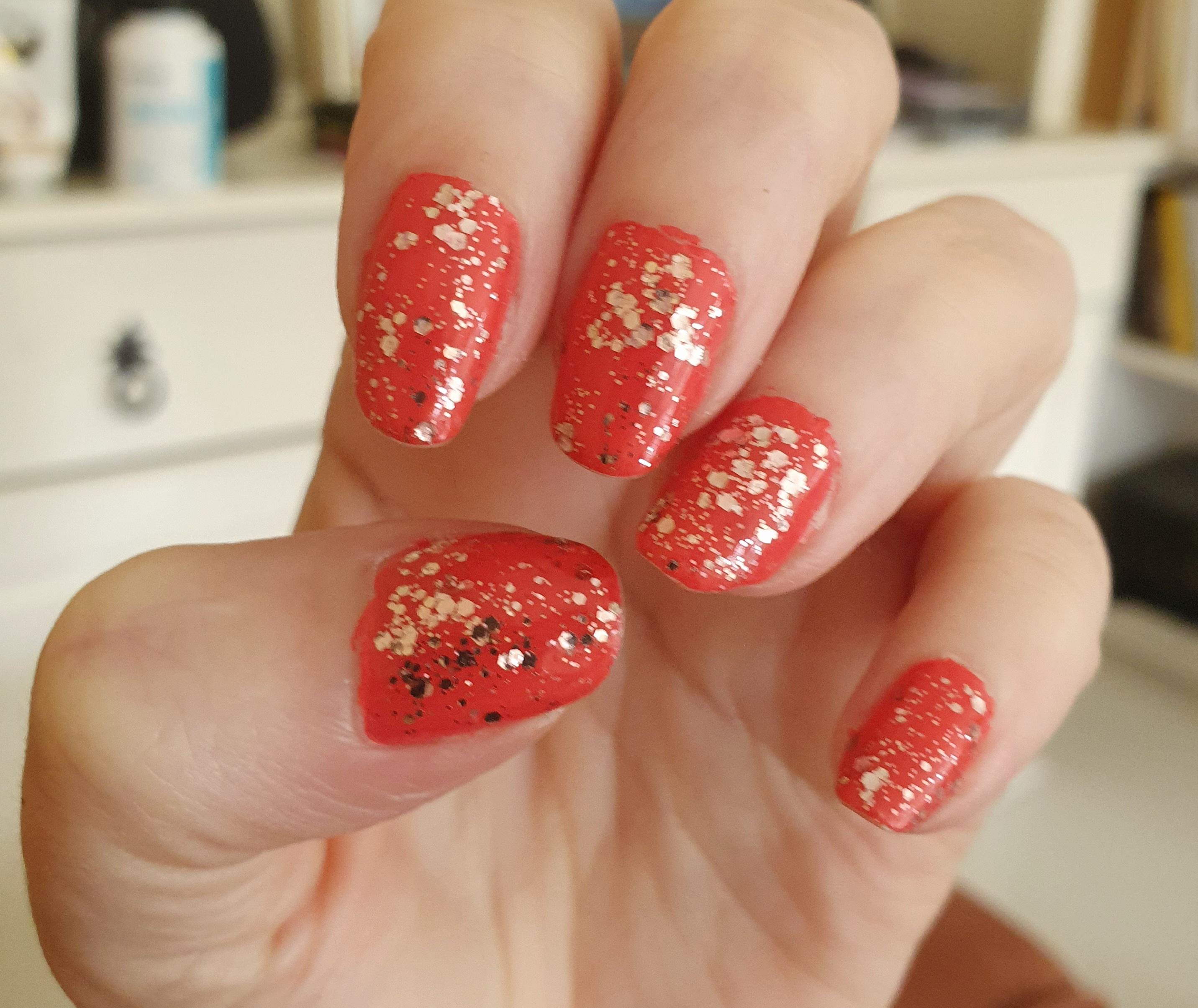 Glitterneglelakk fra det billige merket til normal som jeg var puttet ekstra glitter inn i (også fra normal)
