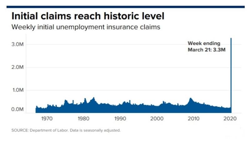 I dag fikk vi den første indikasjonen på hvor det bærer hen i USA. Over 3 millioner (!!!) amerikanere har registrert seg som arbeidsledige denne uka. Det er ny rekord. Den forrige rekorden var på 695.000 nye arbeidsledige tilbake i 1982. Hva bringer framtiden? Mange frykter det kommer til å bli mye verre. (CNN)