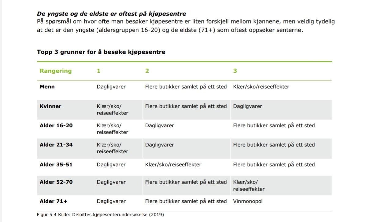 AnonymBruker Skrevet 3. mai 2020 #137 Skrevet 3. mai 2020 Jeg tror heller ikke at mange av de som går på sentrene nødvendigvis trenger alt de er der for å handle. Mange bruker det som en unnskyldning for å gjøre noen annet enn å sitte hjemme. Kjøpesenter er mer enn butikker for mange i dag. Det er mange som bruke fritiden sin på å gå på senteren i stedet for å gå på tur for eksempel. Det er en samlingsplass for eldre og yngre osv. Her er en undersøkelse fra 2019 av folk sine kjøpesenter vaner Anonymkode: 7db15...f79