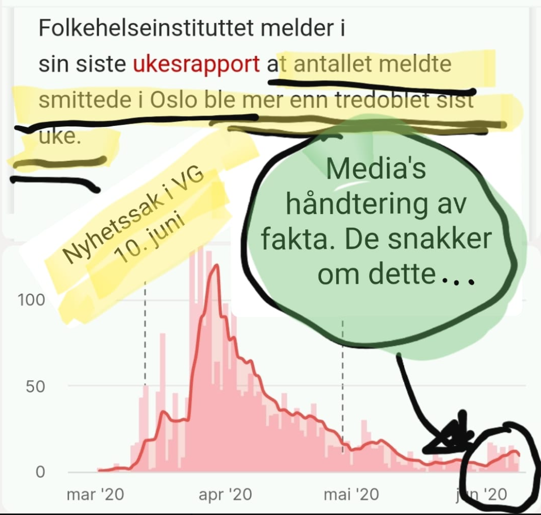 Media elsker å hause dette opp. Når det er så få smittede så skal det ikke mye til før det er stor prosenvtis økning. Newflash: Vi blir ikke kvitt dette 100%. Det kommer til å gå opp og ned fremover.