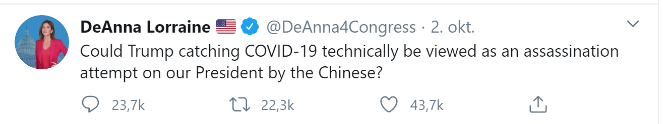 Hatsumomo Skrevet 4. oktober 2020 #6 Skrevet 4. oktober 2020 22 timer siden, Dankert skrev: 13,000 retweets were related to a QAnon conspiracy theory that the president is going into quarantine while mass arrests of high-profile politicians like Trump’s former Democratic nominee Hillary Clinton are carried out... Er jo bare å sitte seg stille tilbake i båten da og se på at Qanon driter seg ut.