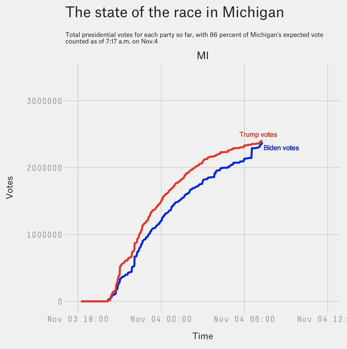 Aliquis Skrevet 4. november 2020 #194 Skrevet 4. november 2020 2 minutter siden, likestilling said: De fant en haug med stemmer der 100% gikk til Biden, så nå går Michigan til Biden og da blir det 270-268 før PA er ferdig. Selv om Trump leder der, er det nok 75% til Biden av de som er igjen, og som de har en uke på seg til å telle opp. Uansett ser det dårlig ut for Trump. Det blir galskap i USA, men hva skal norsk MSM skrive om nå? Tettbefolkede distrikter stemmer Biden i mye større grad enn man gjør utenfor byene, så det er jo helt naturlig å anta at man vil se større "plutselige" hopp for Biden, da stemmene fra disse tettbefolkede områdene kommer inn samtidig. Haugen med stemmene fant de nok i valgurnen. 3