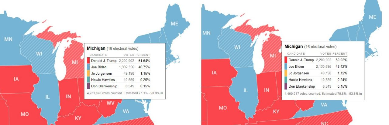 likestilling Skrevet 4. november 2020 #196 Skrevet 4. november 2020 (endret) 7 minutter siden, Aliquis skrev: Tettbefolkede distrikter stemmer Biden i mye større grad enn man gjør utenfor byene, så det er jo helt naturlig å anta at man vil se større "plutselige" hopp for Biden, da stemmene fra disse tettbefolkede områdene kommer inn samtidig. Haugen med stemmene fant de nok i valgurnen. Nei du kan så si.... men jeg må innrømme at jeg ble litt overrasket over at de talte opp 140.000 stemmer og samtlige, 100% gikk til Biden.... Jeg hadde trodd at kanskje én eller to av 140.000 skulle stemme Trump, men sånn kan det gå... Edit: det samme skjedde i Wisconsin, så det er kanskje ikke sååå rart. Kanskje de hadde lagt til side noen stemmer til Biden og valgte å ta alle i et jafs, hvem vet.... Endret 4. november 2020 av likestilling
