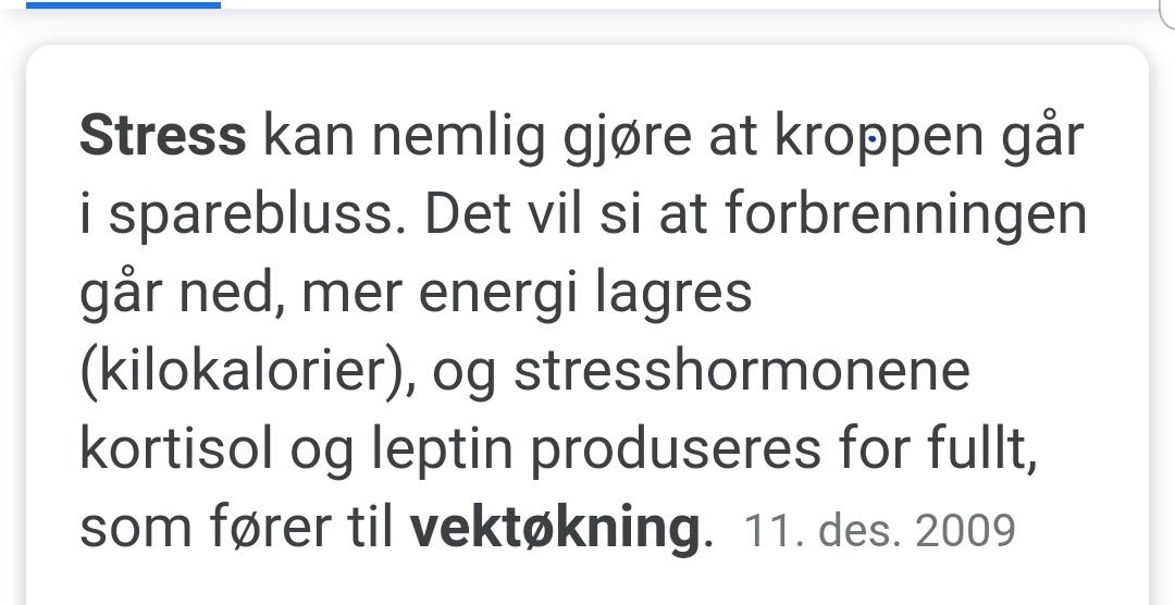 AnonymBruker Skrevet 6. november 2020 #20 Skrevet 6. november 2020 1 minutt siden, AnonymBruker skrev: når kortisolnivået stiger, føler du deg mer sulten. Spesielt blir du sugen på sukker og fett. Dermed er det ikke så rart at du spiser på deg et par–tre kilo ekstra i en stresset periode. Mange sliter også med å få nok søvn, noe som også øker appetitten. Anonymkode: 9f8dd...158 Hvis jeg bare dropper å spise så blir jeg slank igjen da? Anonymkode: 71f93...4a6