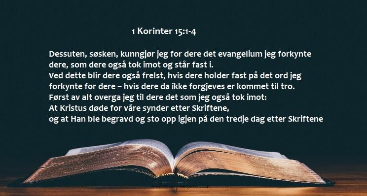 1 korinter 15:1-4 Skrevet 19. november 2020 #5 Skrevet 19. november 2020 Romerne 10:9-13 For dersom du bekjenner Herren Jesus med din munn, og tror i ditt hjerte at Gud har oppreist Ham fra de døde, skal du bli frelst. For med hjertet tror en til rettferdighet, og med munnen bekjenner en til frelse. Skriften sier jo: Hver den som tror på Ham, skal ikke bli gjort til skamme. Det er ingen forskjell på jøde og greker, for Han er den samme Herre over alle, Han er rik nok for alle som kaller på Ham. For hver den som påkaller Herrens navn, skal bli frelst. Matteus 10:32-33 Derfor, den som bekjenner Meg for mennesker, ham skal også Jeg bekjenne for Min Far i Himmelen. Men den som fornekter Meg for mennesker, ham skal også Jeg fornekte for Min Far i Himmelen. Lukas 9:26 Hver den som skammer seg over Meg og Mine Ord, ham skal Menneske-sønnen skamme seg over når Han kommer i den herlighet som tilhører Ham, Hans Far og de hellige engler. Romerne 3:23-24 for alle har syndet og mangler Guds herlighet. Men de blir rettferdiggjort, ufortjent, av Hans nåde ved forløsningen, den som er i Kristus Jesus. Apostlenes gjerninger 3:19 Derfor, få et nytt sinn og vend om, så deres synder kan bli utslettet og fornyelsens tider kan komme fra Herrens åsyn Profeten Jeremia 29:13 Dere skal søke Meg og finne Meg, når dere søker Meg av hele deres hjerte.