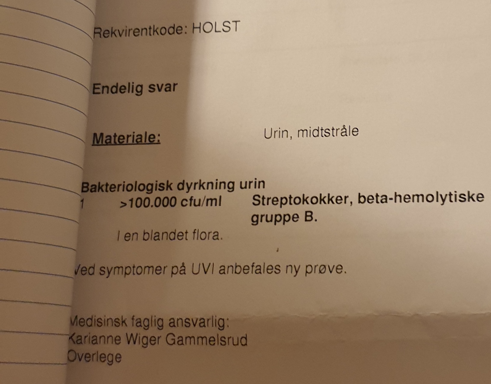 AnonymBruker Skrevet 3. desember 2020 #2 Skrevet 3. desember 2020 Ja, du har visst fått påvist GBS. Det hadde jeg også ved kontroll sist. Det er ikke farlig nå, men hvis du har det ved fødsel så kan det være farlig for barnet. Derfor sjekkes det sånn at de kan være obs ved fødsel. Les litt om det Det er ganske vanlig, det er ikke noe du har gjort eller ikke gjort for å få det. Anonymkode: 800f7...e12