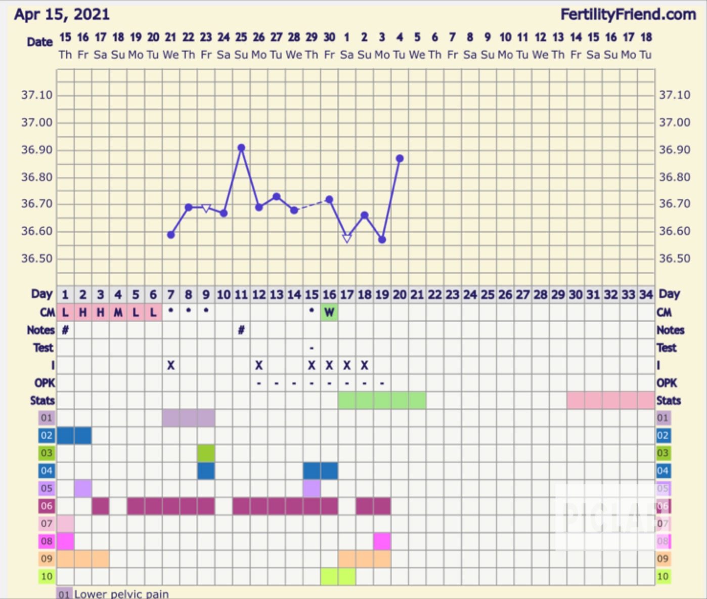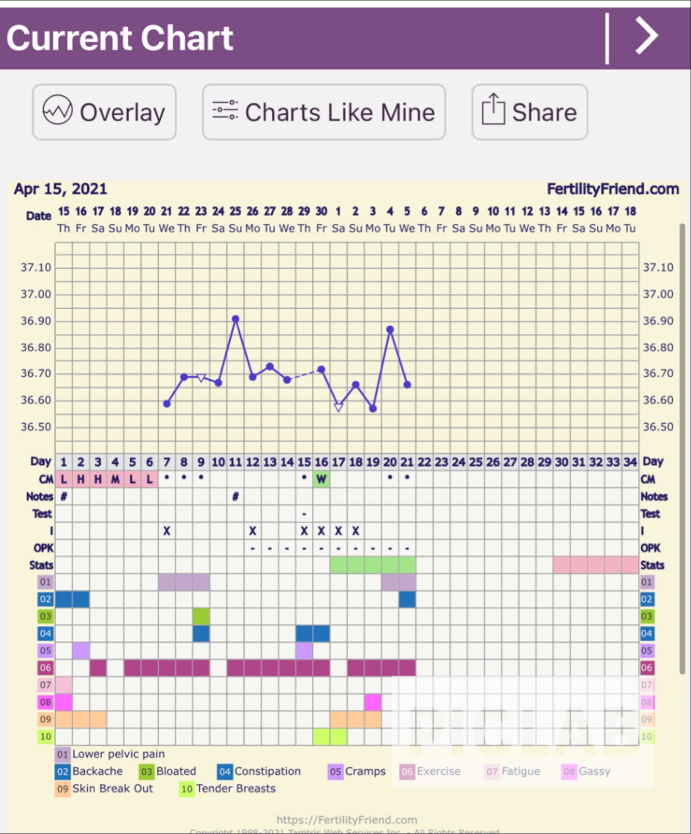 nilci Skrevet 4. mai 2021 Forfatter #131 Skrevet 4. mai 2021 Og der begynte temperaturkurven min å tulle det til også... 🙄 har vært så imponert og sjokkert over tempkurven som ikke har hoppet opp og ned som tidligere, men nå har den tydeligvis ombestemt seg 😂 mistenker veldig hormonkrøll nå, spesielt siden jeg fikk den nesten-positive EL-testen CD15. Livredd for å få diagnosen PCOS når jeg skal til gynekolog 20. mai.
