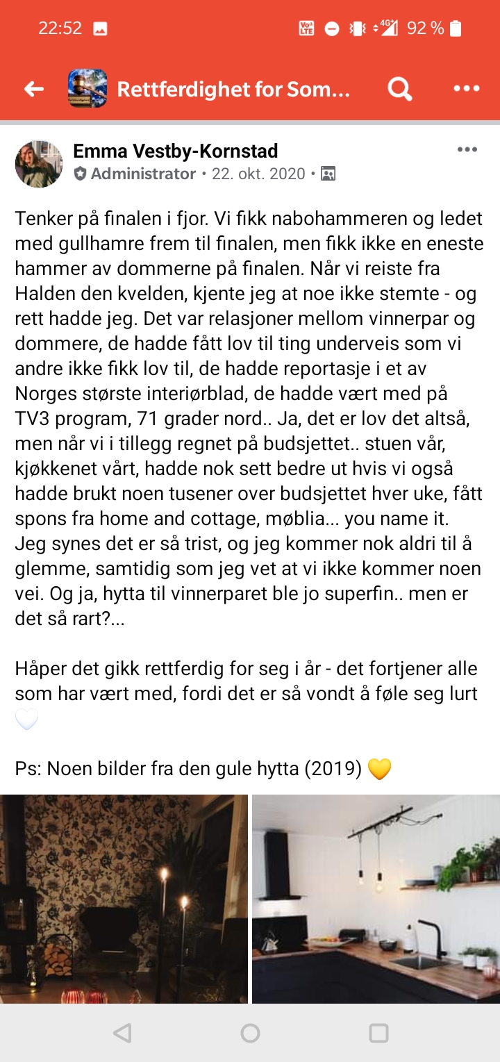 Gjest loveli Skrevet 5. april 2021 #2 Skrevet 5. april 2021 (endret) Innsamlingen stoppet på litt over 300.000,-. https://www.onlinenytt.com/folket-samler-inn-penger-til-emma-og-jostein-sa-de-far-kjopt-drommehytta-2/ Vet ikke hva de har brukt pengene til. Endret 5. april 2021 av loveli