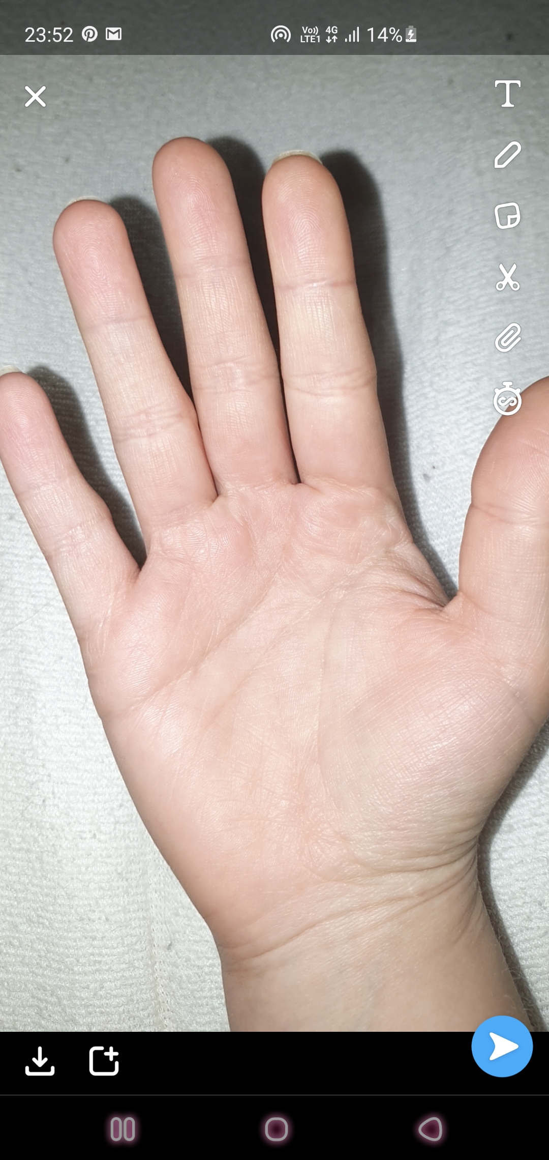 AnonymBruker Skrevet 5. april 2021 #7 Skrevet 5. april 2021 AnonymBruker skrev (7 minutter siden): Gode linjer i hånden din. Veldig lange hjerte- og hodelinjer tyder på en romantisk og følsom natur (pass på for sjalusi) og et intellektuelt og analytisk anlagt hode. Mulig skjebnelinjen ikke er utviklet i høyre hånden ennå? Den er tydelig i venstre hånd, men ser den ikke i høyre (kan være lyset i bildet som gjør det). Det behøver ikke bety noe, kan bety at du har vendt deg bort fra forutbestemt yrke (type familiebedrift, ta over gård etc), eller kan bety at du må jobbe for penga og at linjen utvikles i takt med det. (Jeg er en 'hobbypalmist', så ikke ta meg dønn seriøst da). Burde vurdert håndfasong og de følsomme fingertuppene dine også, men er ikke sikker på om du har ildhånd, så lar det være. Anonymkode: d5498...190 Tusen takk for langt svar 🙏❤ hva er ildhånd. Ja, jeg tror det er lyset eventuelt. Når jeg ser på de nå ser de ganske like ut, men jeg har ikke peiling på hvilken linje som er hva. Kan du se noe om barn og hvor gammel jeg kan bli? Anonymkode: 571a2...5bb
