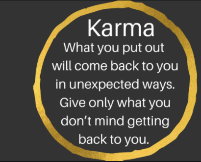 Jeg siterer fra snl (https://snl.no/karma) : "Karma er læren om at handlinger gjort mot andre har konsekvenser for en selv i dette eller senere liv. Begrepet stammer fra indisk religion og betyr handling og handlingers resultat."