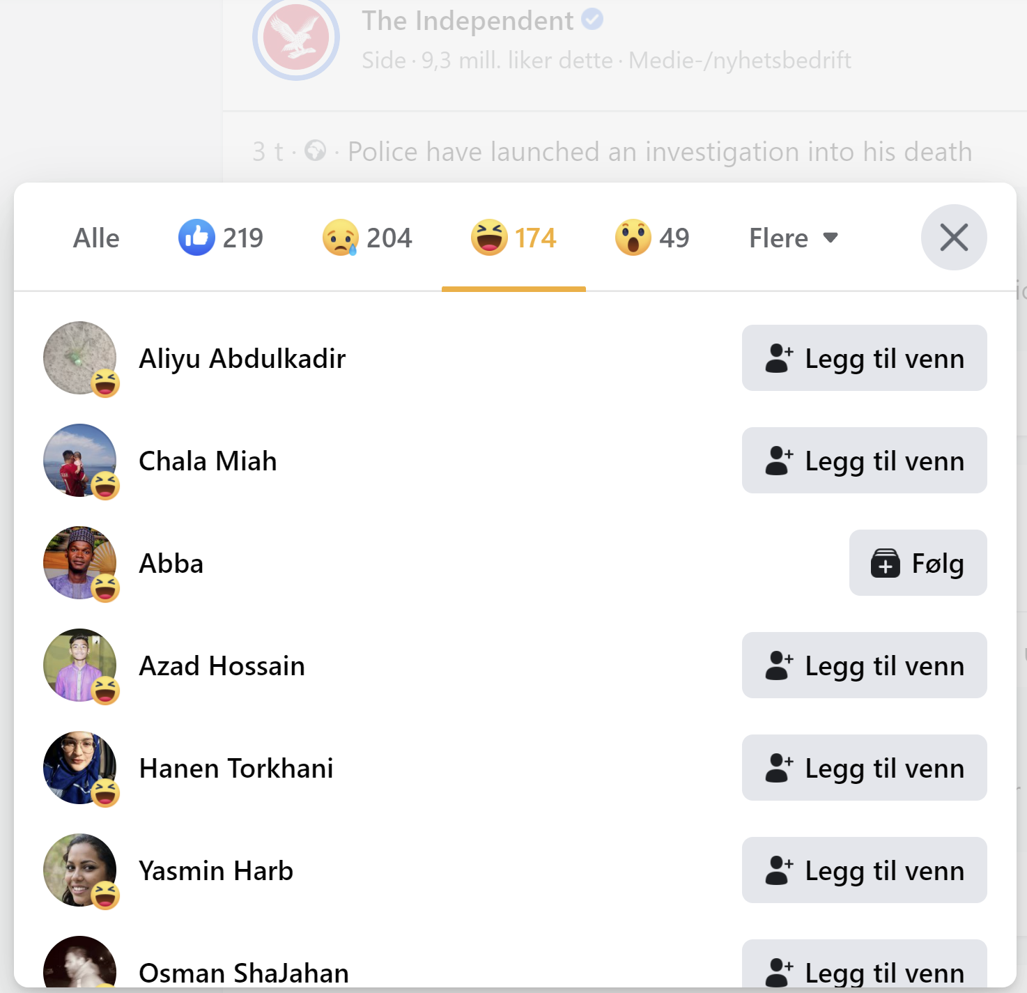 rips & vaniljesaus Skrevet 4. oktober 2021 #10 Skrevet 4. oktober 2021 (endret) Ser muslimene storkoser seg i kommentarfeltene på Facebook over Lars Vilks dødsfall. Fullt av likes og Allah er stor. Endret 4. oktober 2021 av rips & vaniljesaus 25