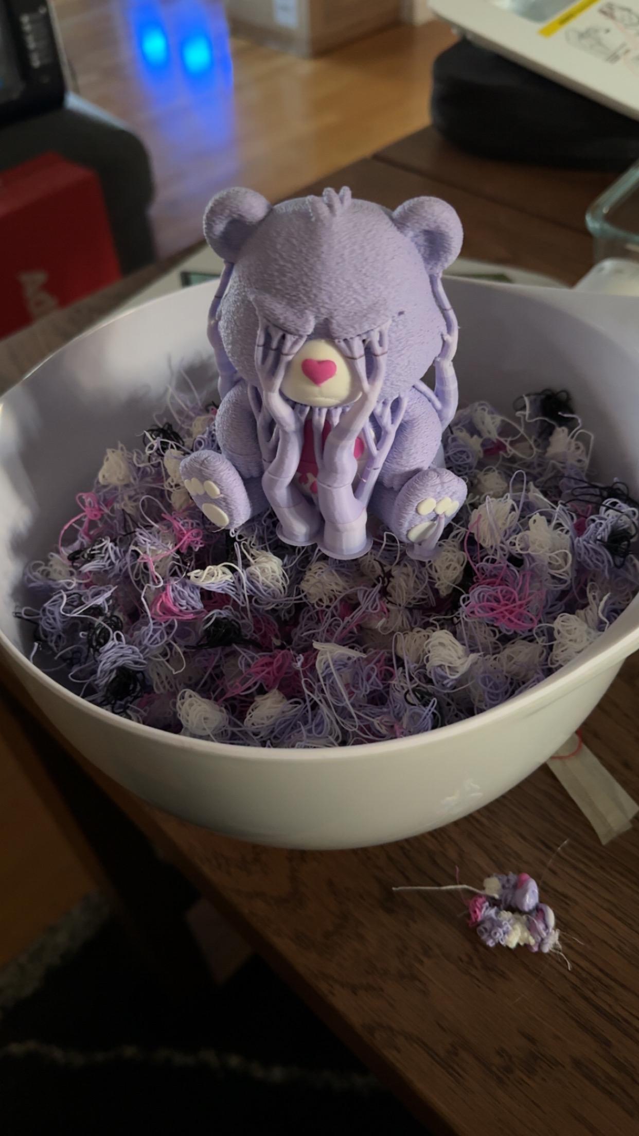Titania Skrevet 15. september #10017 Skrevet 15. september Lur Venn skrev (2 minutter siden): Så printeren bæsjer ut det den ikke bruker på en måte? Jepp 😝 På engelsk kaller de det poop 😂 Så det første jeg printet var en oppsamler til det, kalt poop-chute Og i disse «bruk mindre plast»-tider, så ser jeg jo utfordringen med flerfarget print 🙈 Alt i bollen er søppel fra bamsen 🙈 2