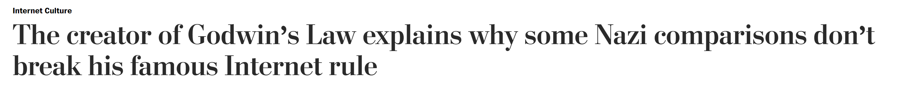 Gugglo Skrevet 25. oktober 2021 Forfatter #7 Skrevet 25. oktober 2021 Entern skrev (2 minutter siden): Husk at når du hitler taper du automatisk debatten https://www.washingtonpost.com/news/the-intersect/wp/2017/08/14/the-creator-of-godwins-law-explains-why-some-nazi-comparisons-dont-break-his-famous-internet-rule/ 2