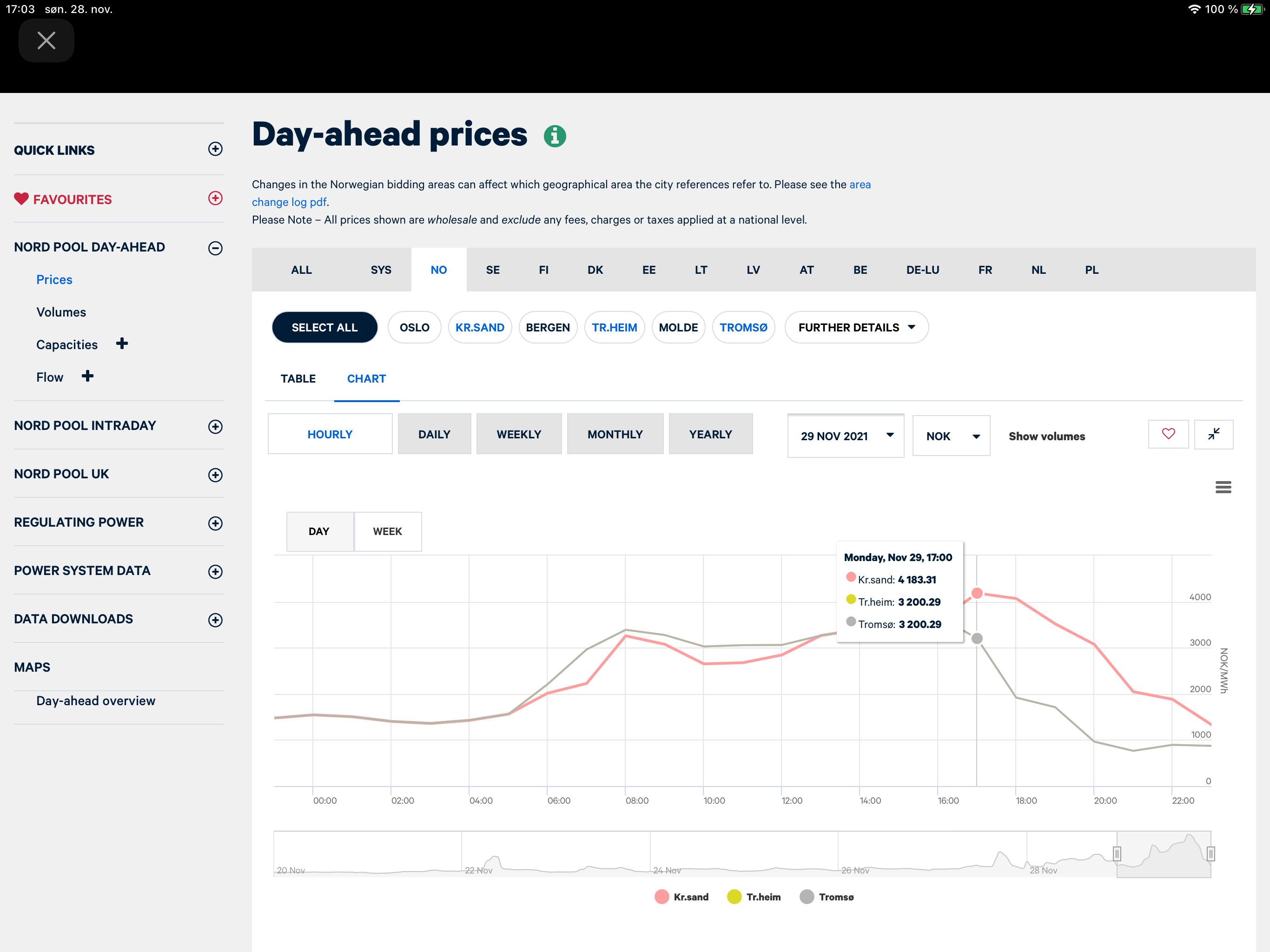 Gjest Adobyen Skrevet 28. november 2021 #18 Skrevet 28. november 2021 (endret) Det kommer nok på nyhetene i dag, for i morgen er det varslet helt utrolig høye strømpriser, 5,23 kr kwh i sør og en smule lavere i nord. Oversikten fra Nord Pool er uten avgifter. (Flytt komma og multipliser med 1,25) https://www.nordpoolgroup.com/Market-data1/Dayahead/Area-Prices/NO/Hourly/?view=chart Endret 28. november 2021 av Adobyen