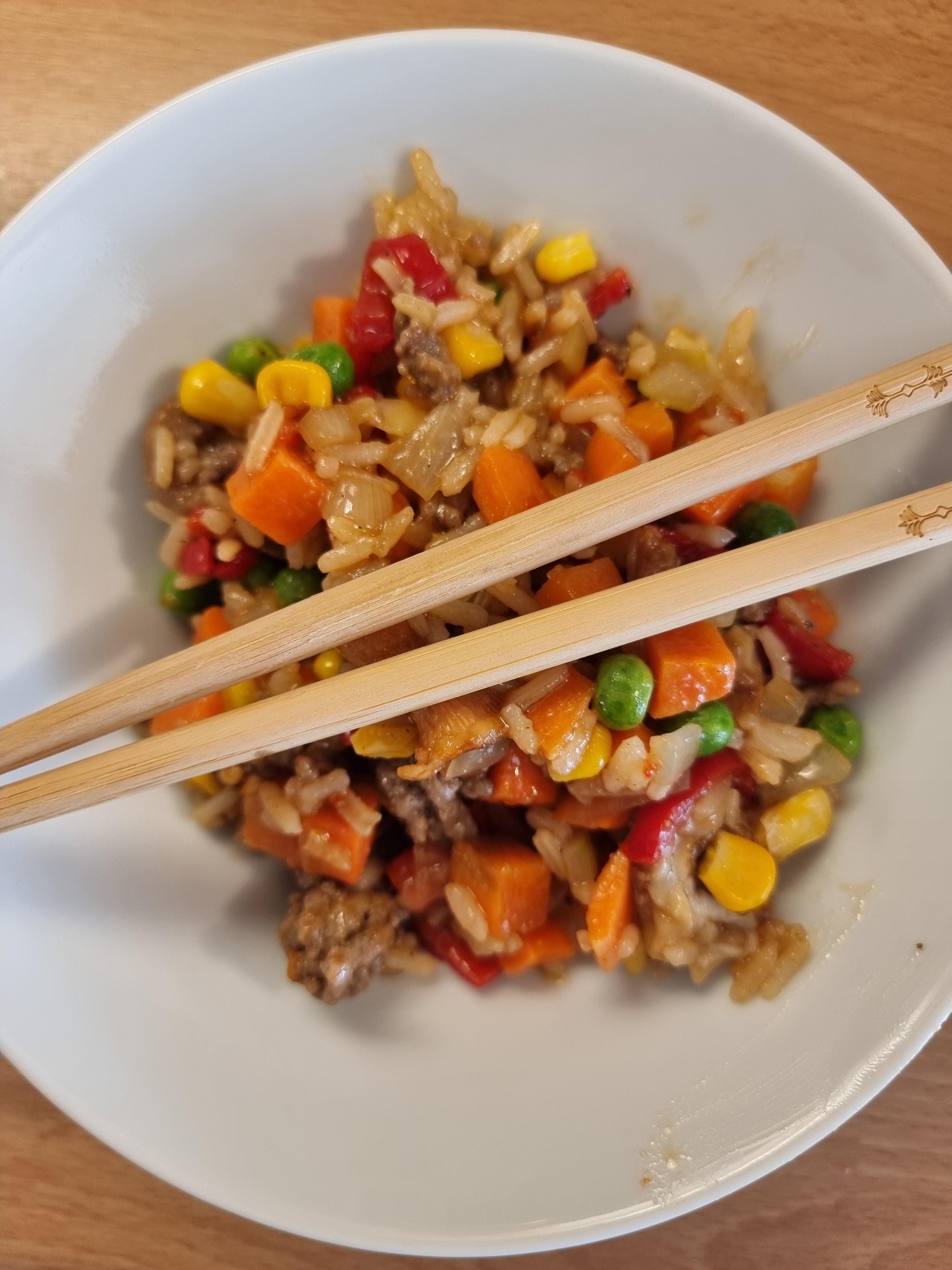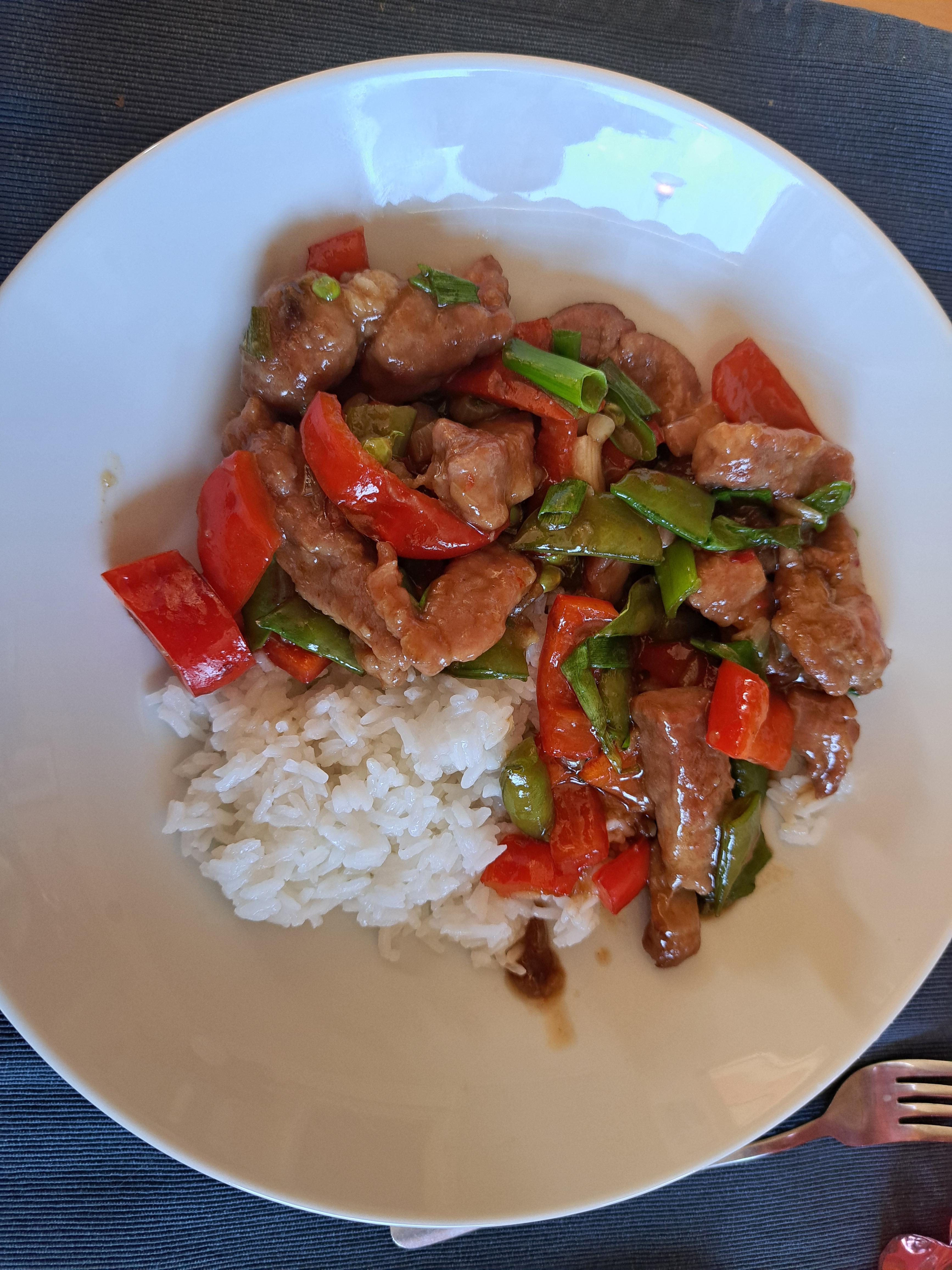 MarianneE Skrevet 27. juni #8585 Skrevet 27. juni Asiainspirert Svin med grønnsaker, stickysauce og ris 4 2