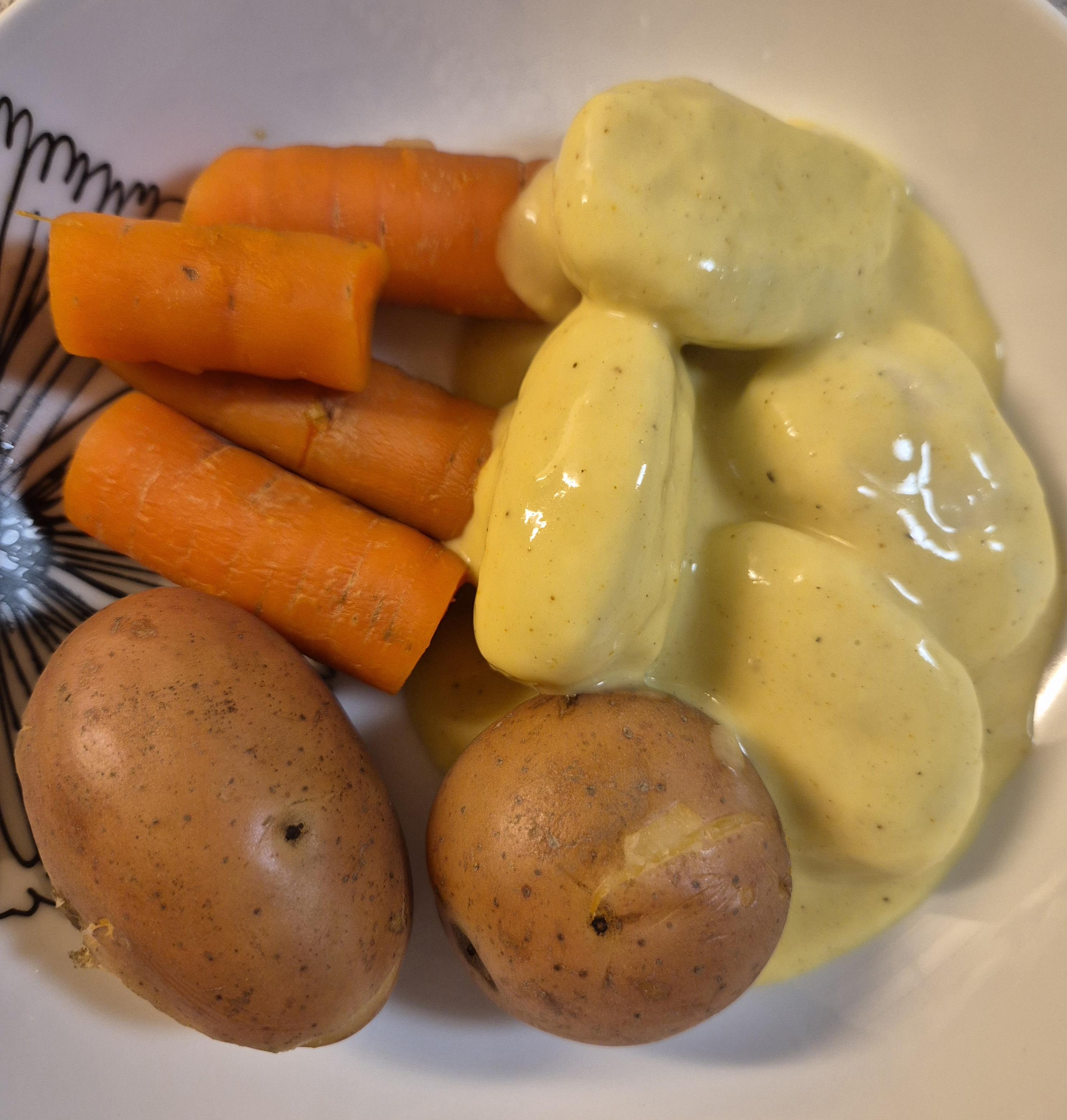 Jadasikkert29 Skrevet 29. juni #8593 Skrevet 29. juni Idag ble det fiskeboller i karrisaus med poteter og gulrøtter 😊 3 2 1