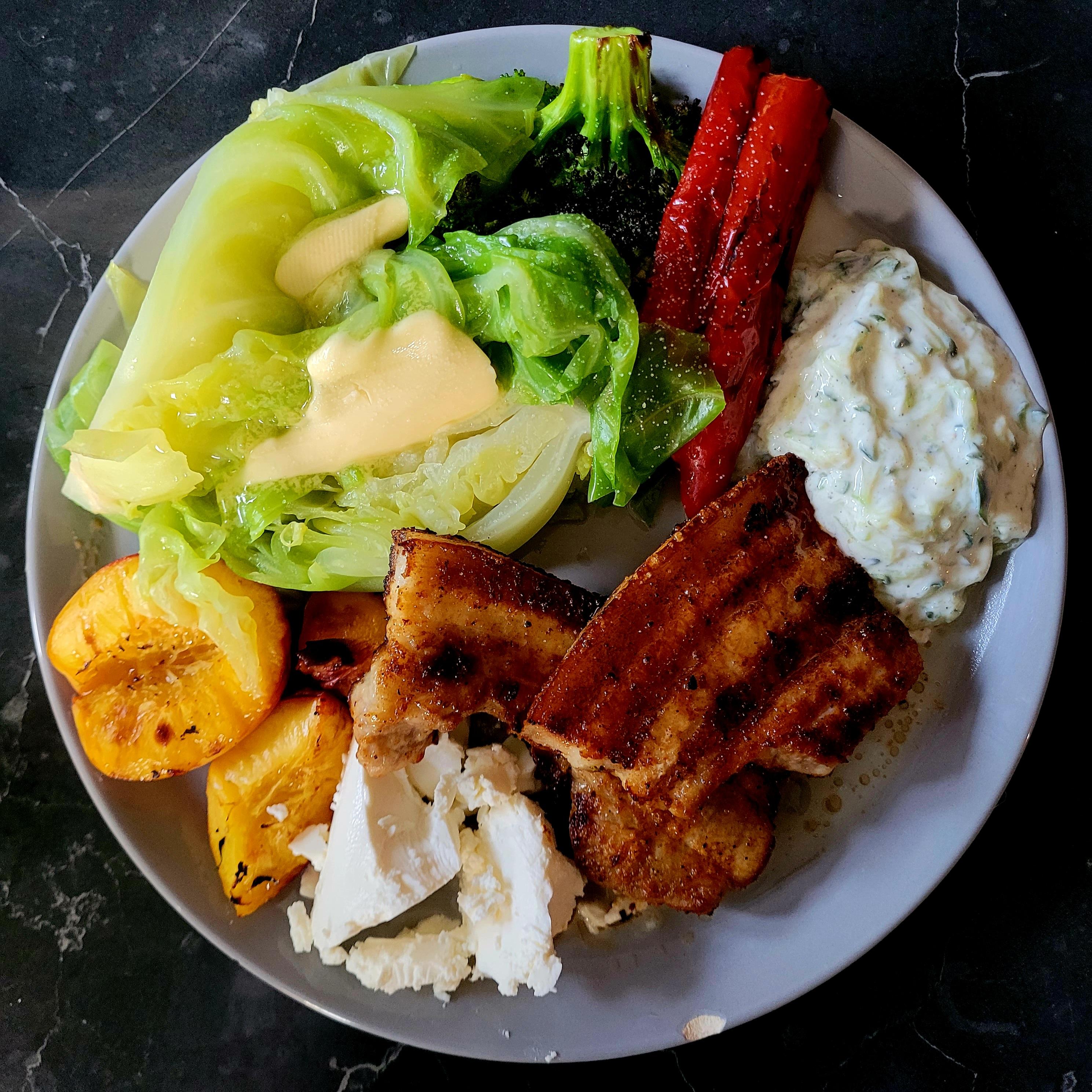 jannihj92 Skrevet 29. juni #8600 Skrevet 29. juni Det blåser litt mye her i dag, så utendørs grilling utgikk. Men! Jeg har kjøpt meg elektrisk grill som kan brukes innendørs, og i dag fikk jeg endelig testet den. Jeg er SÅ fornøyd. Gleder meg til å lage julemiddagen på grillen i desember 🤣 Middagen i dag bestod av grillribbe, grillet paprika, brokkoli og nektarin, dampet sommerkål, tzatziki og fetaost. 4 3 1
