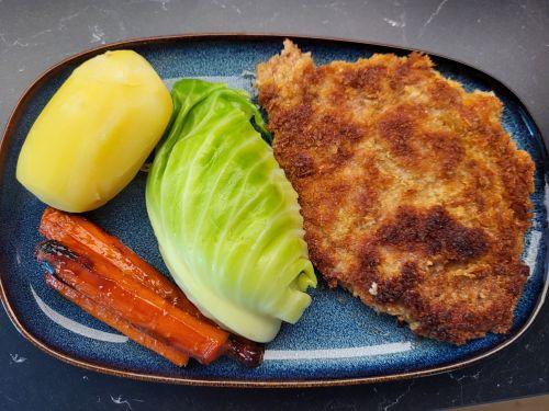 elien Skrevet 27. juni #8584 Skrevet 27. juni (endret) Nakkekotelett, benet den ut, så banket den før den ble pankopanert, (ble nesten ikke plass til tilbehøret når den ble så flat), med dampet nykål, honing og soya-bakt gulrot og potet Endret 27. juni av elien 6 3 2