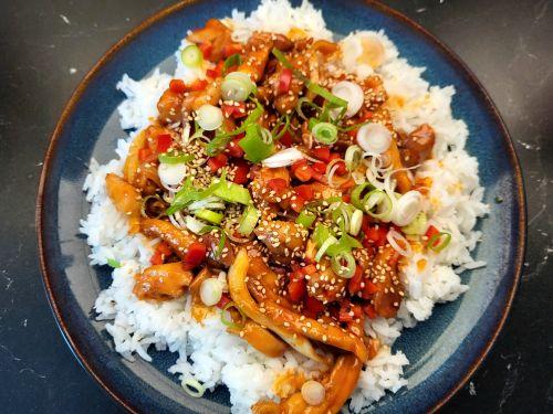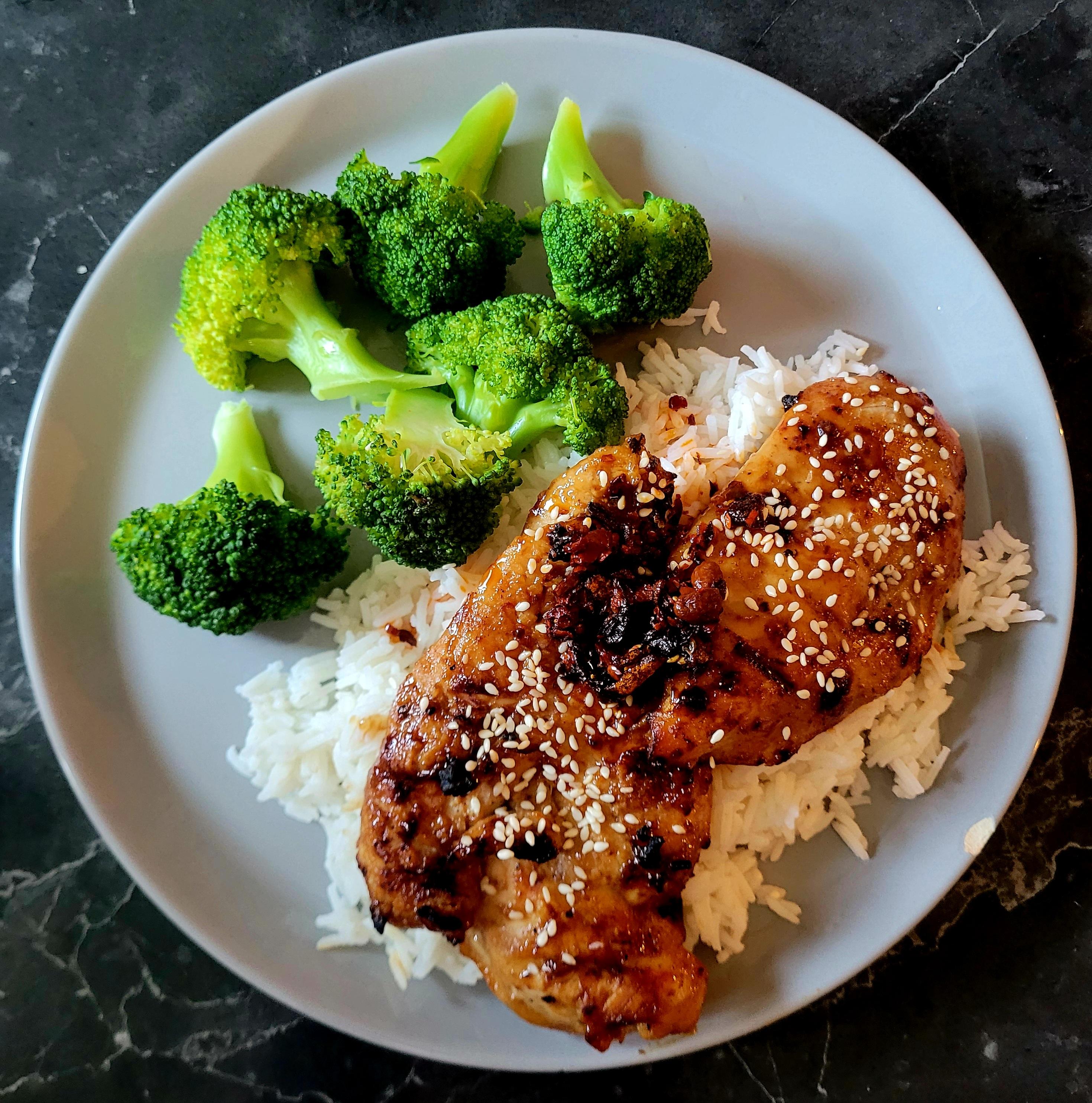 Dagens asiatiske ble kinesisk BBQ-kylling med kokt ris og brokkoli.