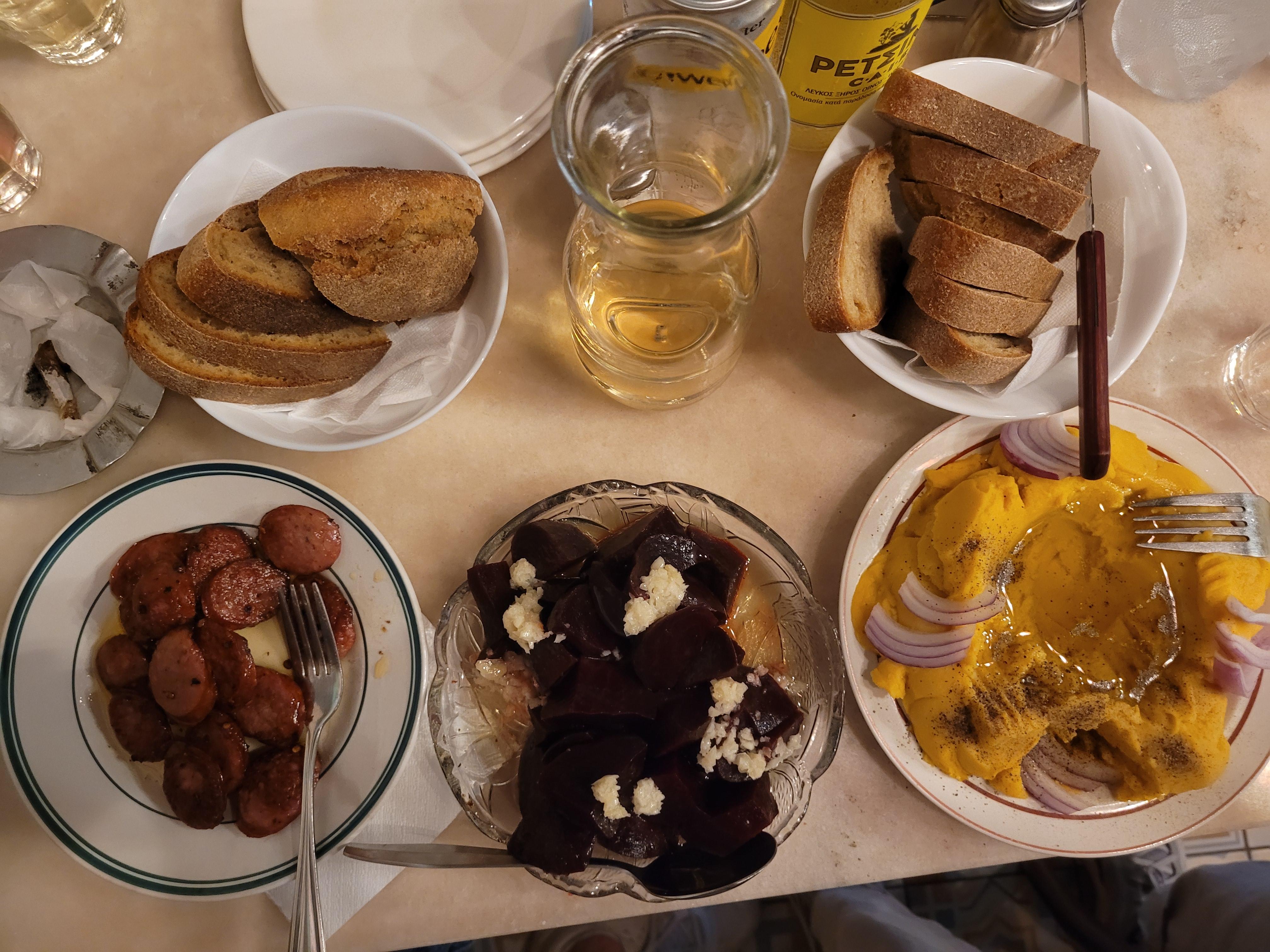 Pawn Hearts Skrevet 12. september #8903 Skrevet 12. september I går kveld: Pølser med mastikha, rødbeter med hvitløk pluss fava på kafe To Giasemi Mas i Rodos by. 1 3