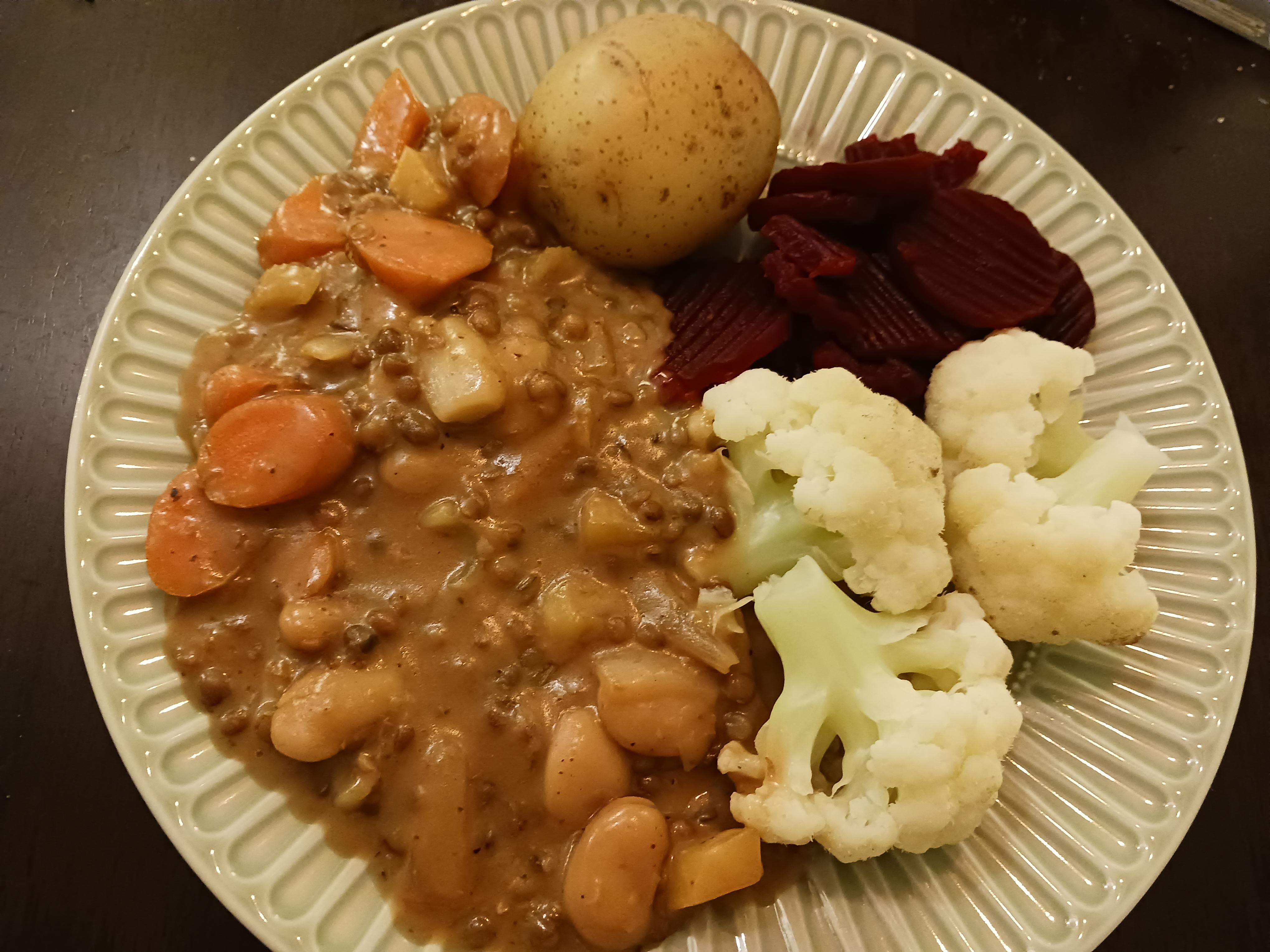AnonymBruker Skrevet 13. september #8909 Skrevet 13. september Linse-, bønne- og grønnsaksgryte med potet, blomkål og rødbeter. Anonymkode: 5b50f...7e4 4 4