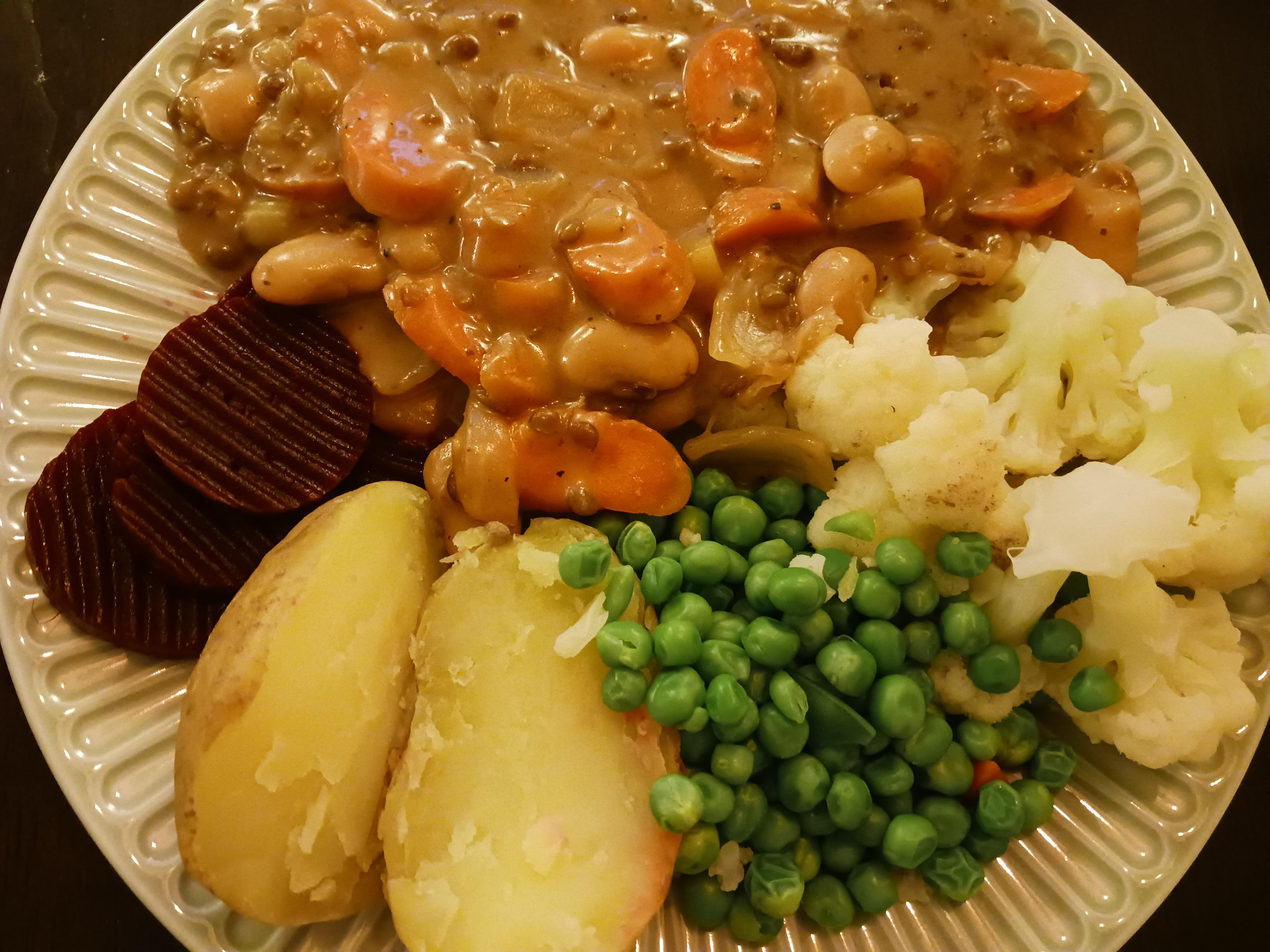 AnonymBruker Skrevet 14. september #8912 Skrevet 14. september Rester fra i går. Bønne-, linse- og grønnsaksgryte med potet og grønnsaker. Anonymkode: 5b50f...7e4 3 2