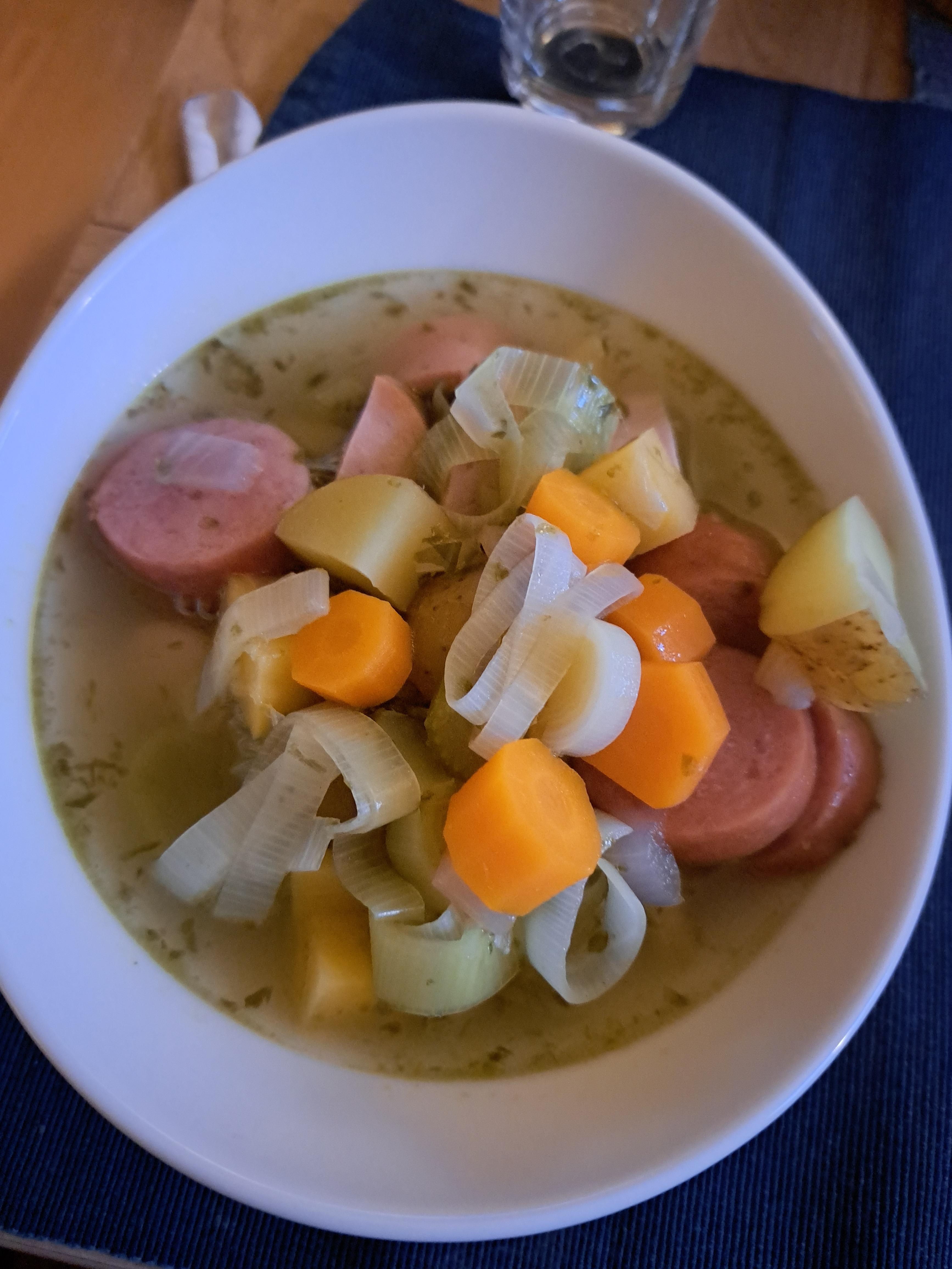 MarianneE Skrevet 1. oktober #9008 Skrevet 1. oktober (endret) Grønnsaksgryte med pølser. Brukte poteter, gulrøtter, kålrot, selleri, purre, vossakorv og middagspølser. Endret 1. oktober av MarianneE 3 3