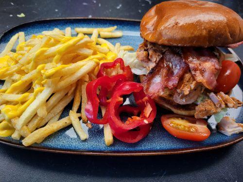 elien Skrevet 10 timer siden #9021 Skrevet 10 timer siden Pulled Chicken (fra datodisken) i smørrstet brioch burger brød, med salat, tomat, bacon, chipotle maio, søt paprika og Hoff airfryer sticks med en Hoff litt hot ostet saus 1 2