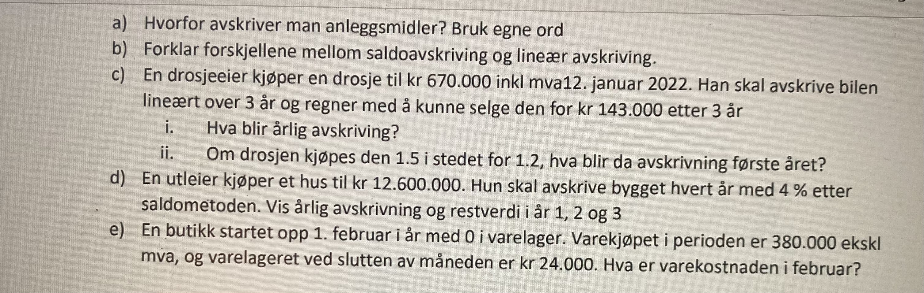 AnonymBruker Skrevet 11. februar 2022 #8 Skrevet 11. februar 2022 Varekostnaden er kjøp av varer med kr 380 000 fratrukket restvarer på lager 24 000. Anonymkode: b00e5...377